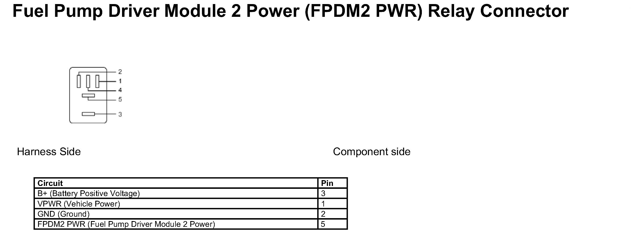 - harness circuits: B+ GND FPDM GND FPDM2 GND FPDMR GND FPM FPM2 FP FP PWR FP2P and FPDM2 PWR
