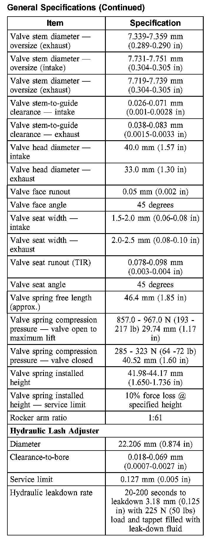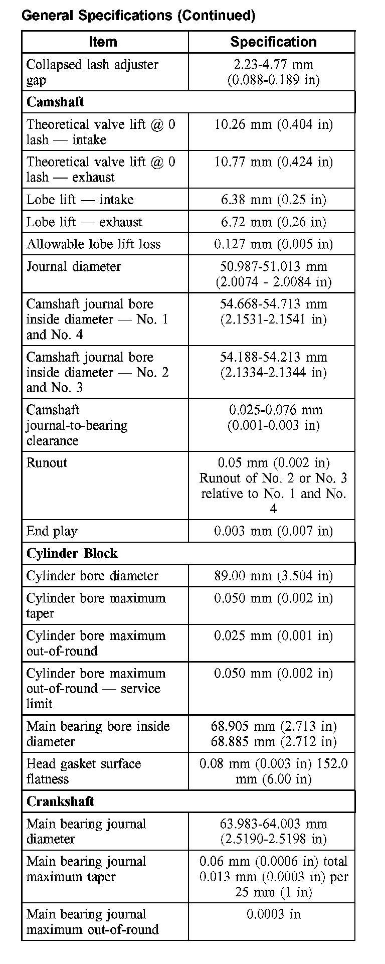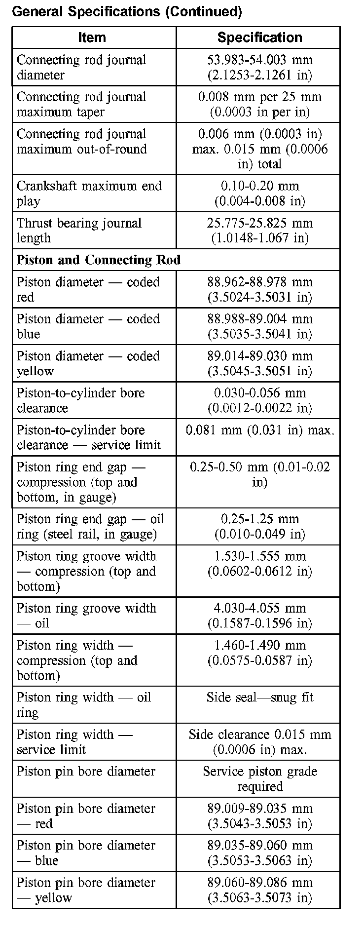 General Specifications