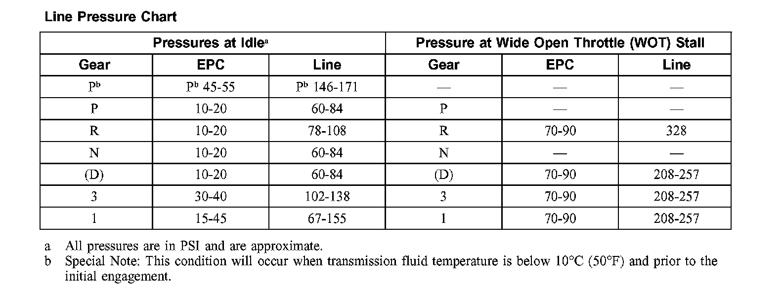 Line Pressure Chart: