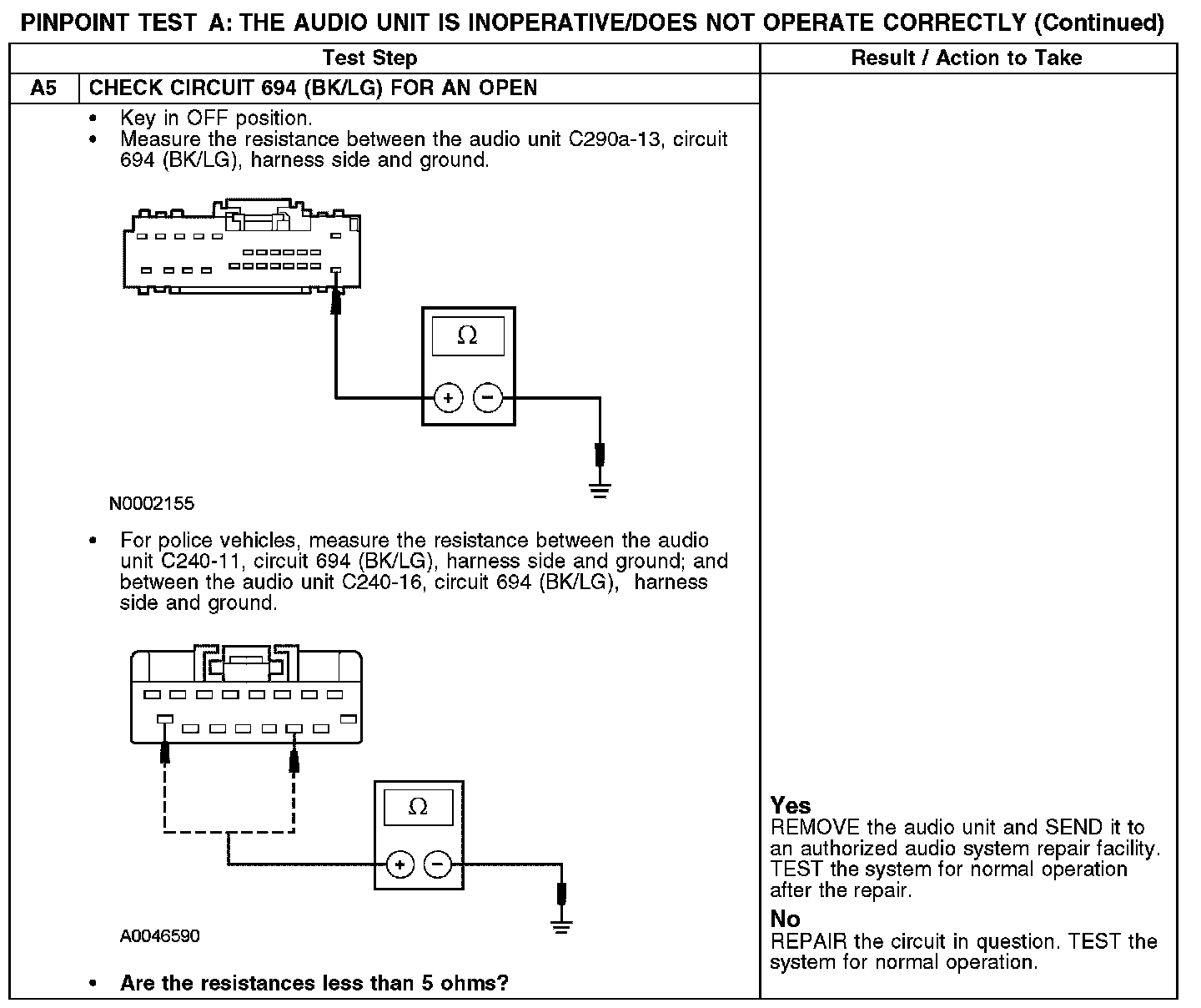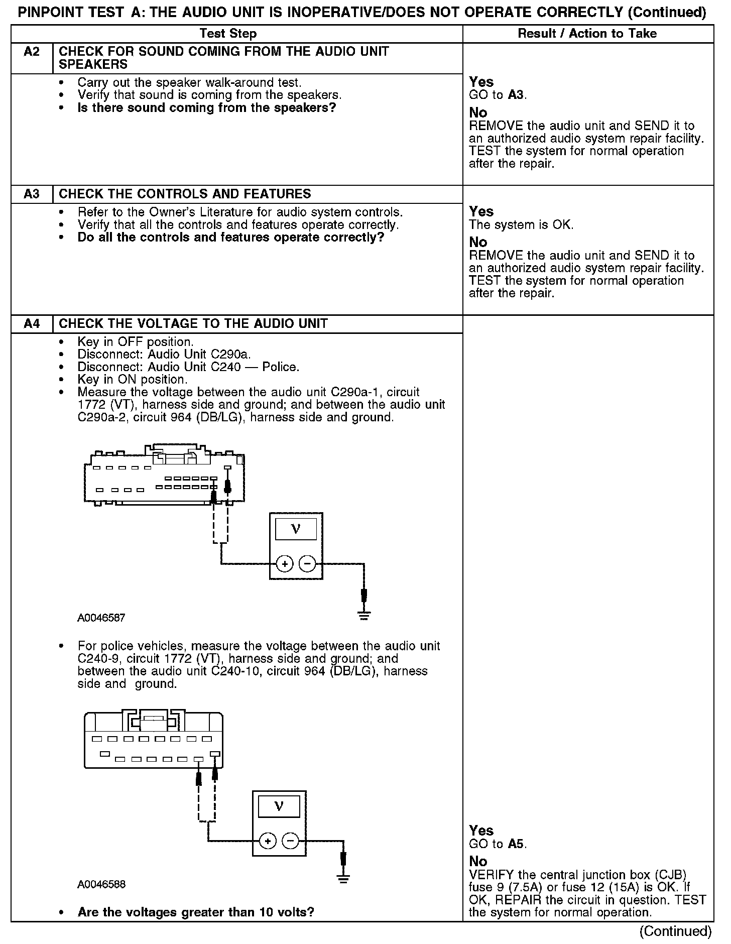 PINPOINT TEST A: THE AUDIO UNIT IS INOPERATIVE/DOES NOT OPERATE CORRECTLYA1: