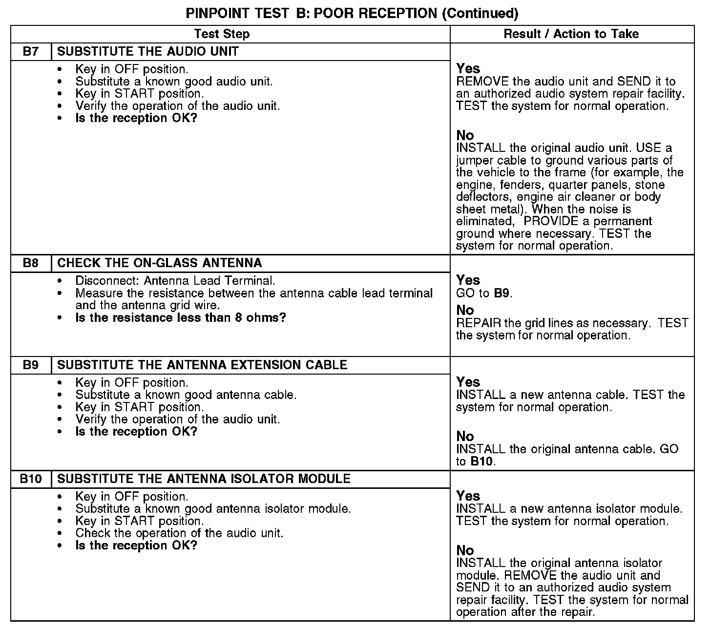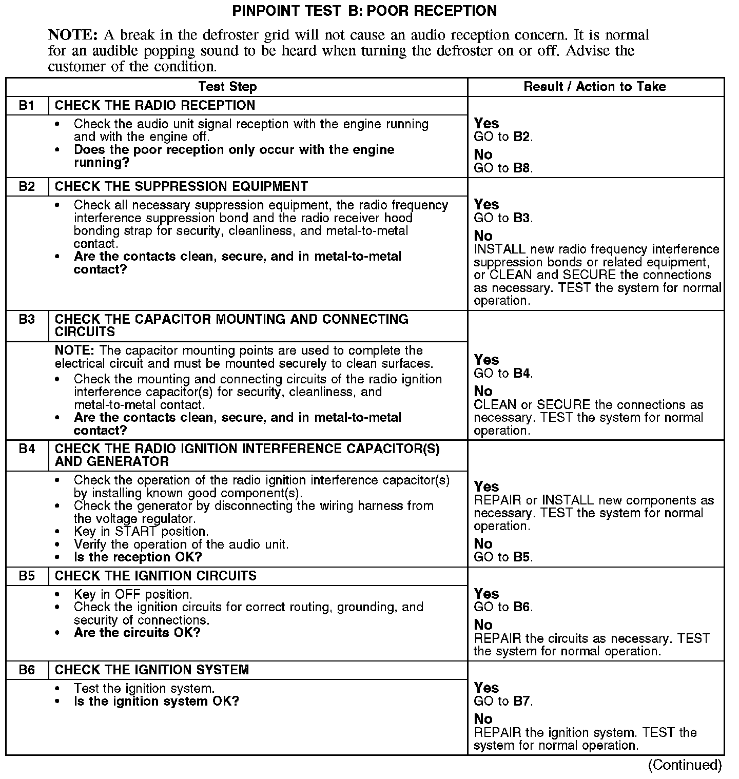 PINPOINT TEST B: POOR RECEPTIONB1-B6: