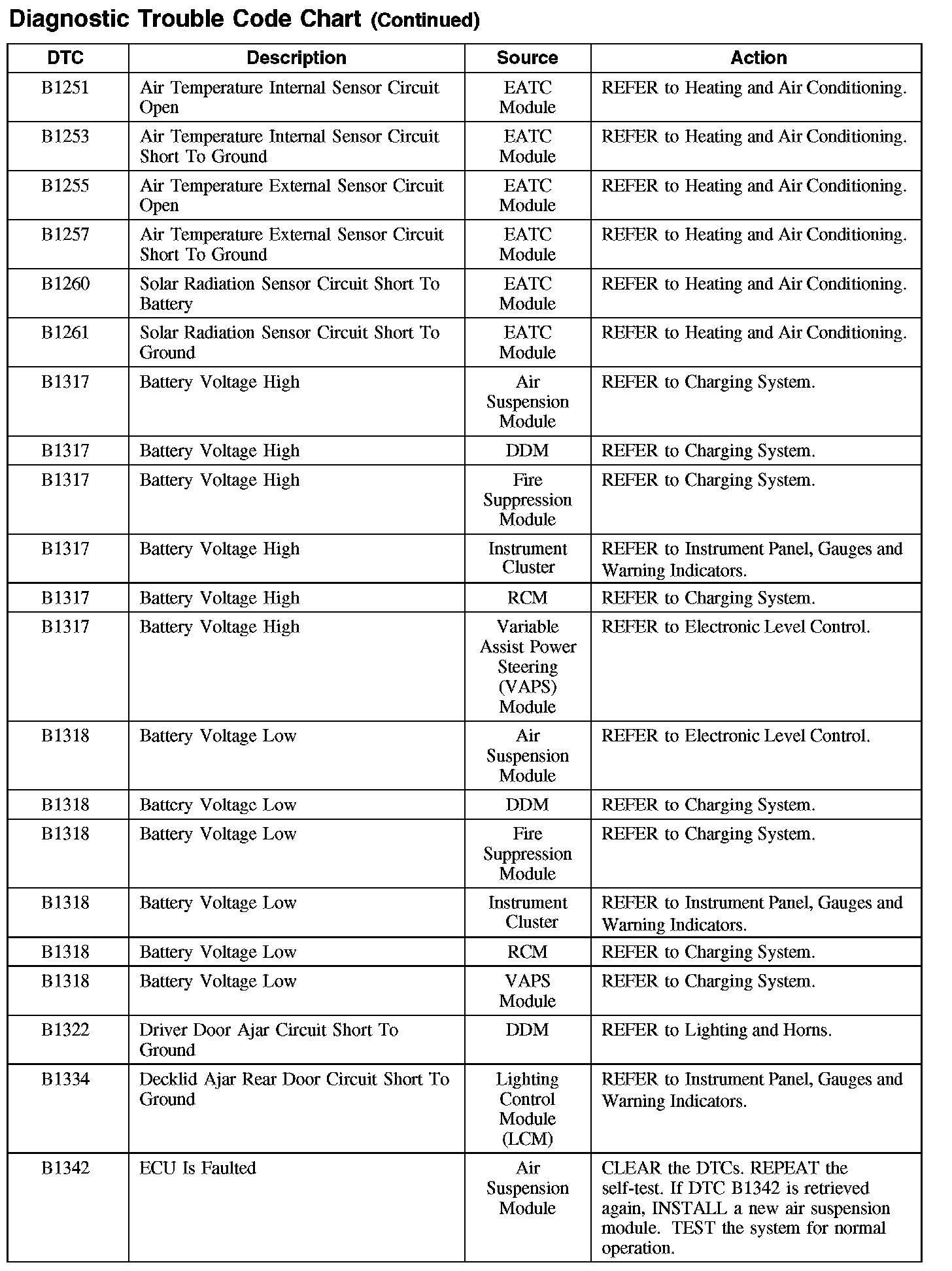 Diagnostic Trouble Code Descriptions