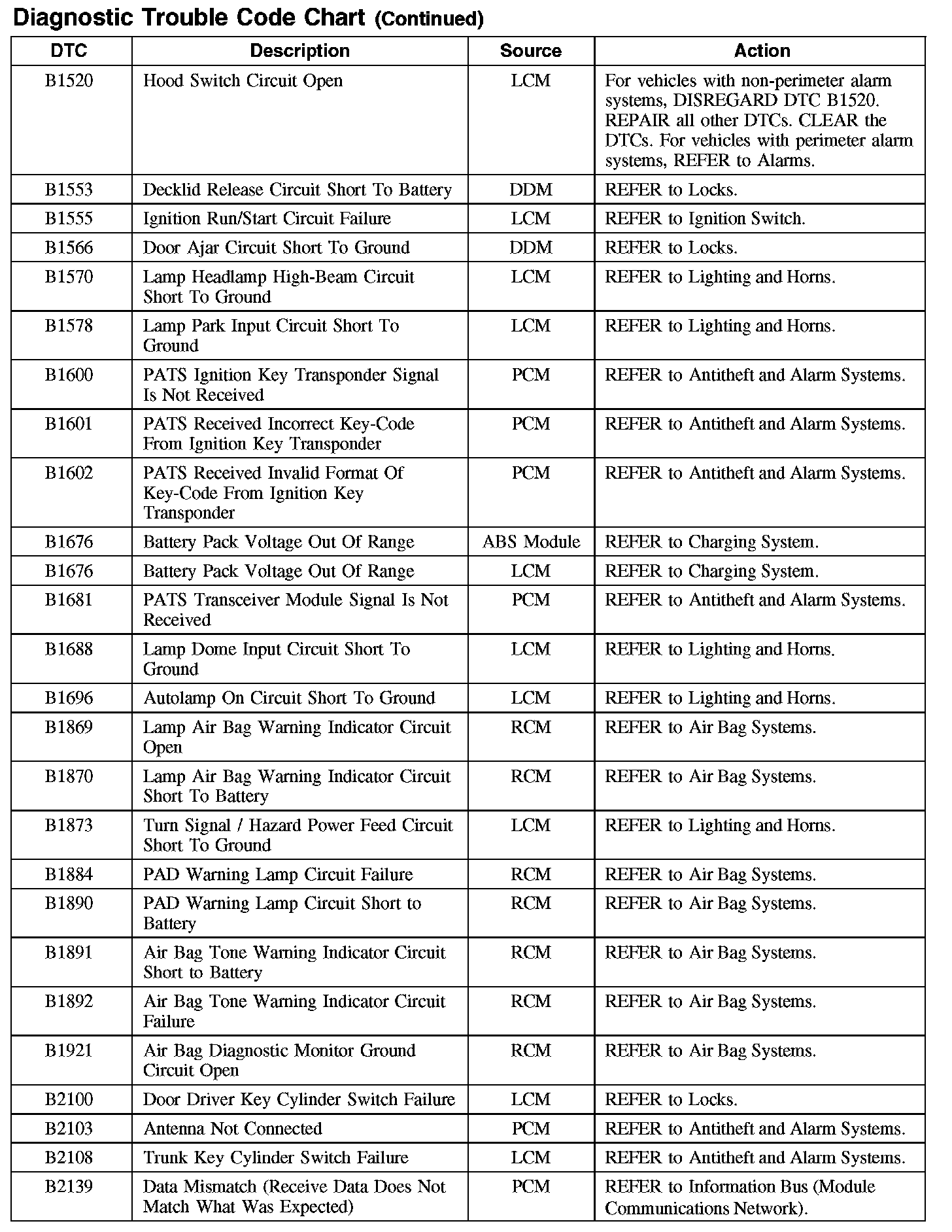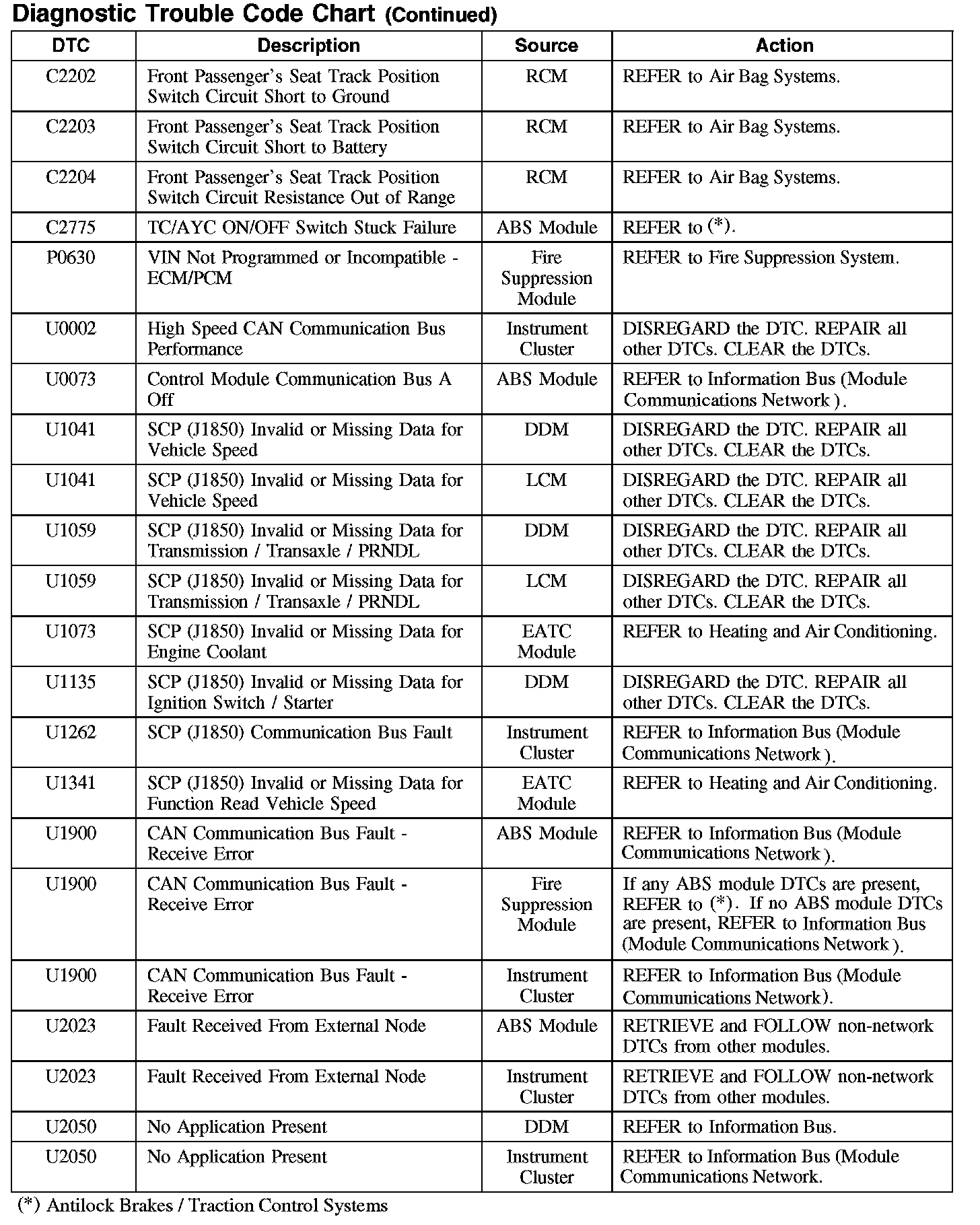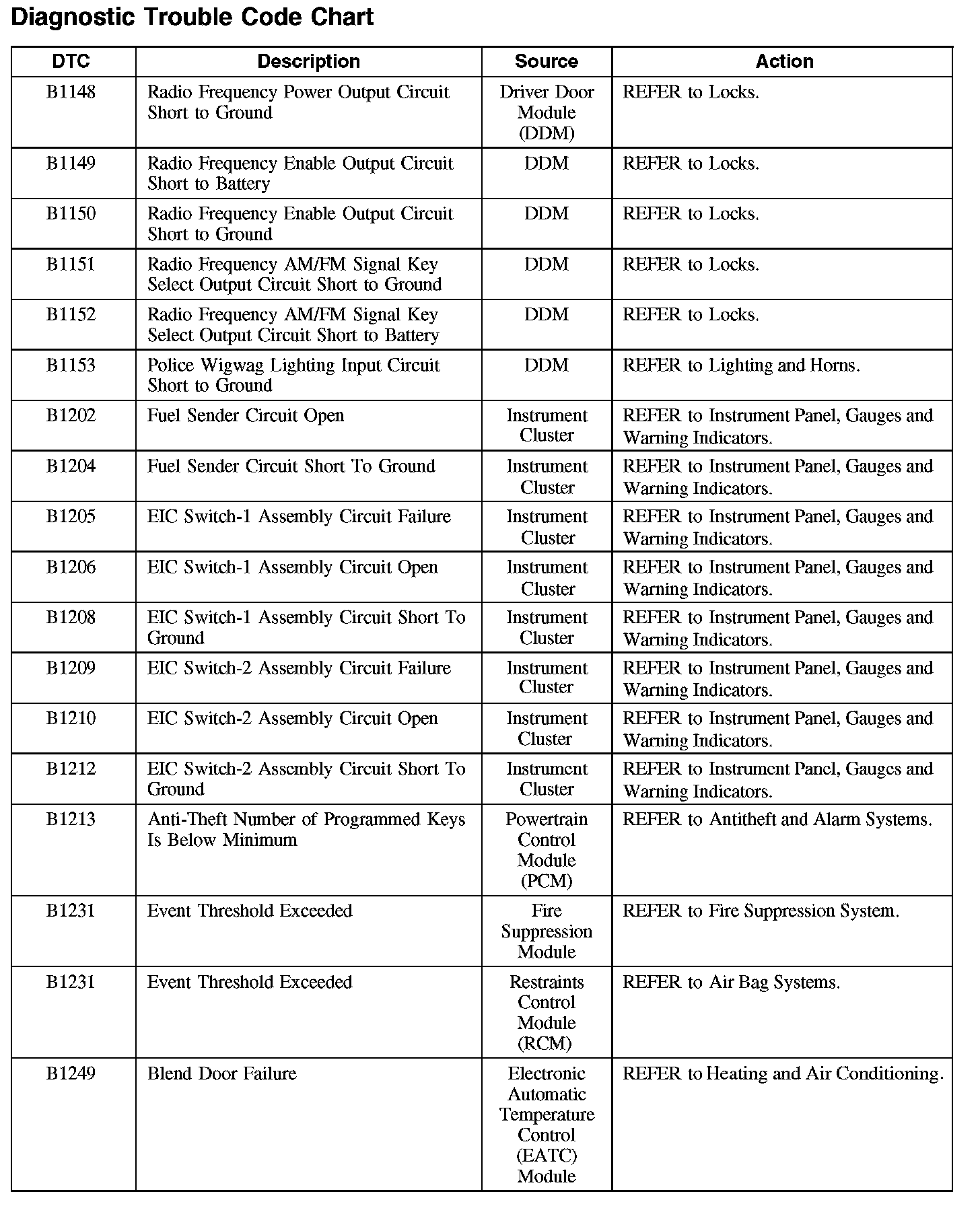 DIAGNOSTIC TROUBLE CODE CHART