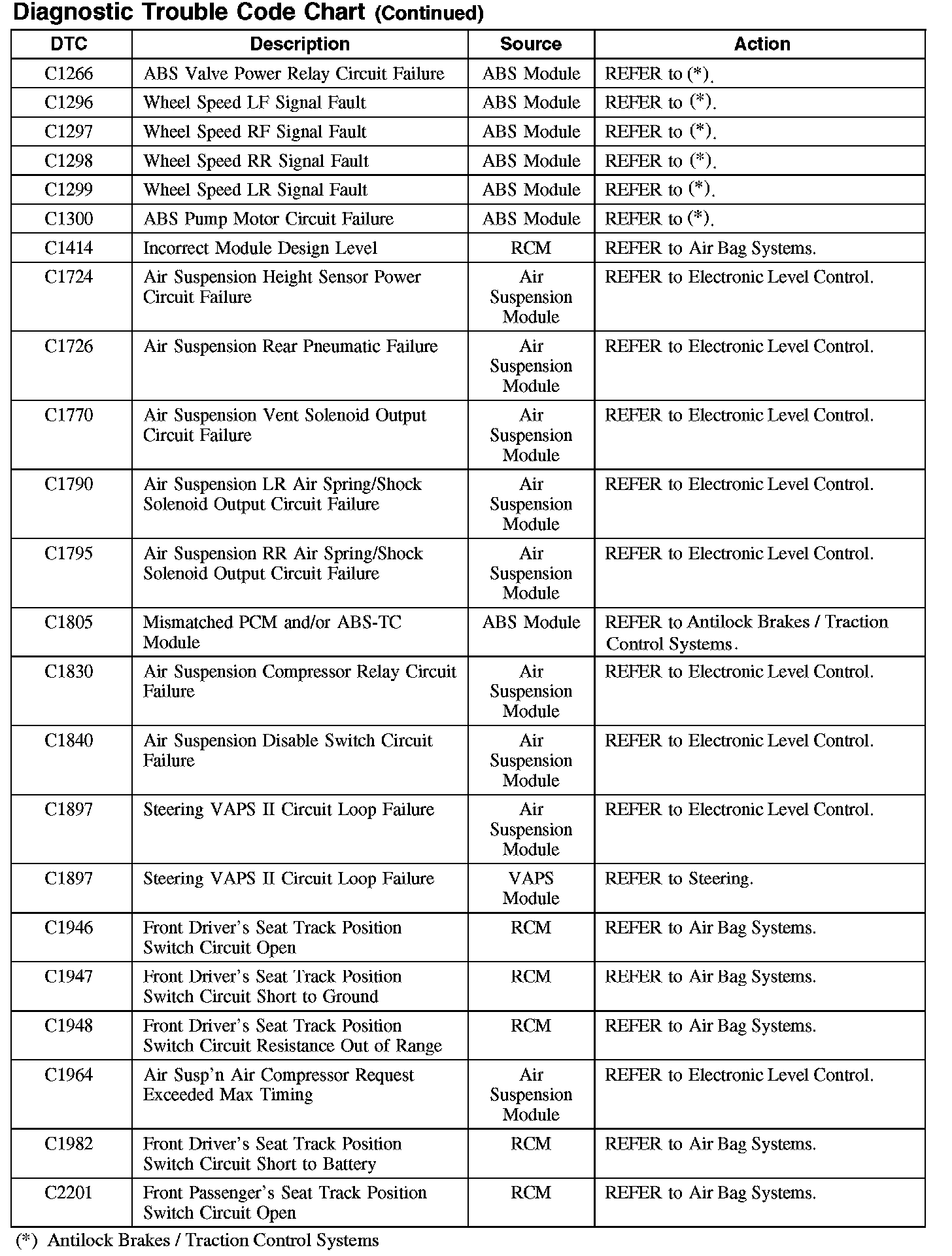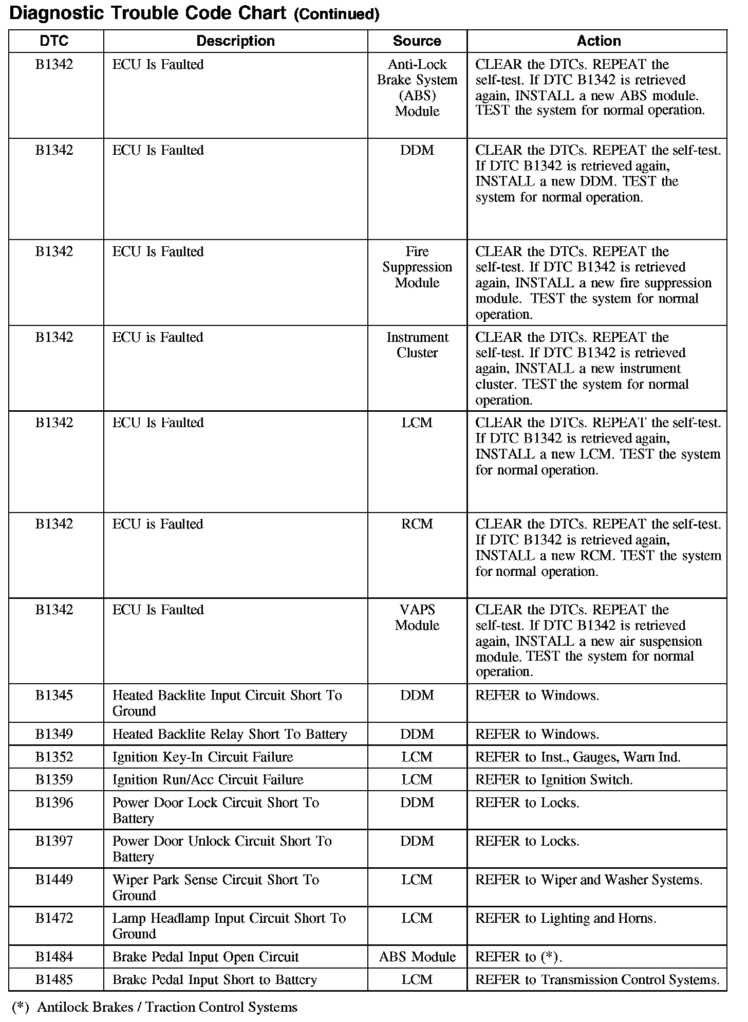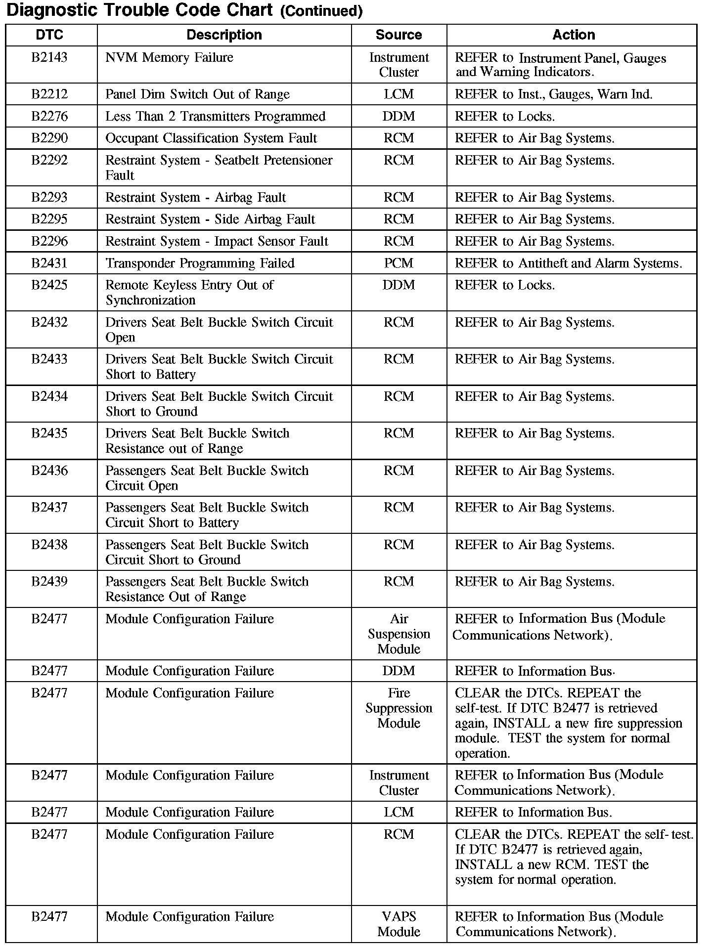 DIAGNOSTIC TROUBLE CODE CHART