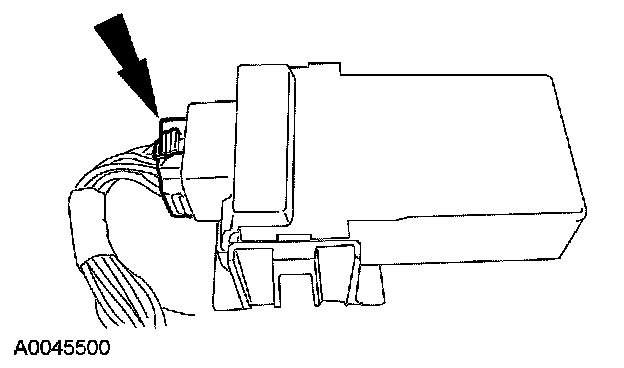 1. Install the heated seat module in the mounting bracket. Verify that the locking tab is correctly seated.