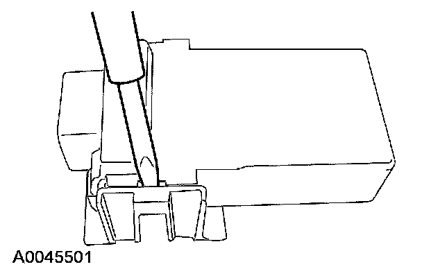 5. Insert a flat-bladed screwdriver into the heated seat module bracket and release the locking tab. Remove the heated seat module.