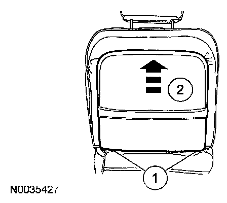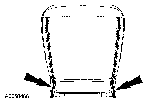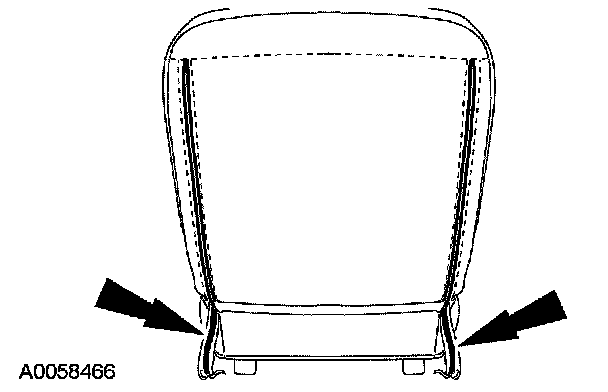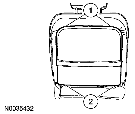1. Angle the top of the seat backrest trim panel inward and down to engage the 2 upper retaining hooks to the backrest frame.