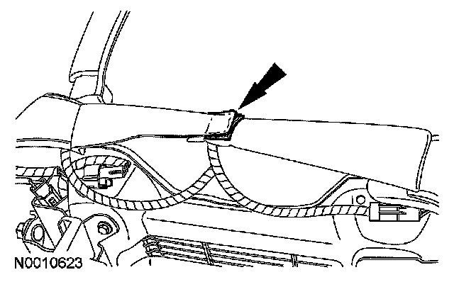 8. CAUTION: Inspect the seat backrest trim panel retaining hooks for damage. If damaged, install a new seat backrest trim panel.