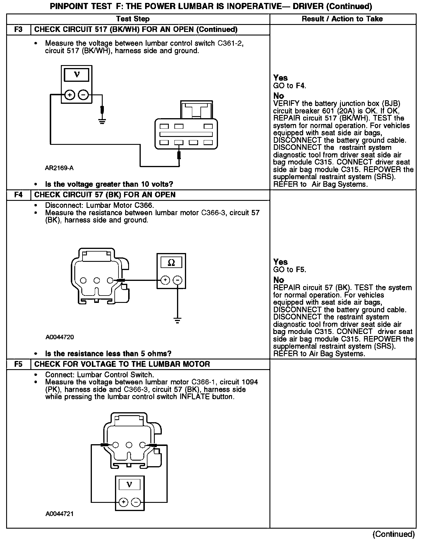 PINPOINT TEST F: THE POWER LUMBAR IS INOPERATIVE - DRIVERF1-F3: