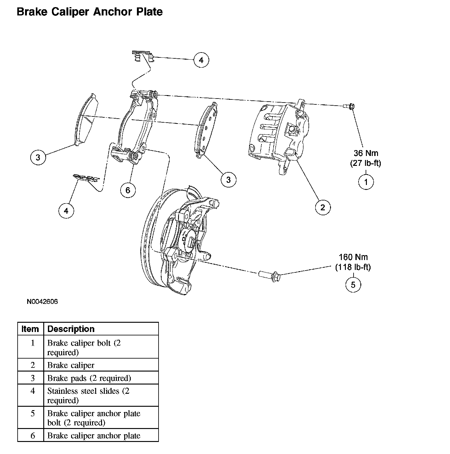 NOTE: When installing the brake caliper anchor plate, new brake caliper anchor plate bolts must be used.