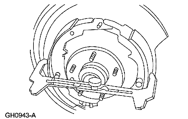 7. Using a suitable brake adjusting gauge, set the rear brake shoe and lining diameter to 0.5 mm (0.020 inch) less than the inside diameter of the drum portion of the rear brake disc.