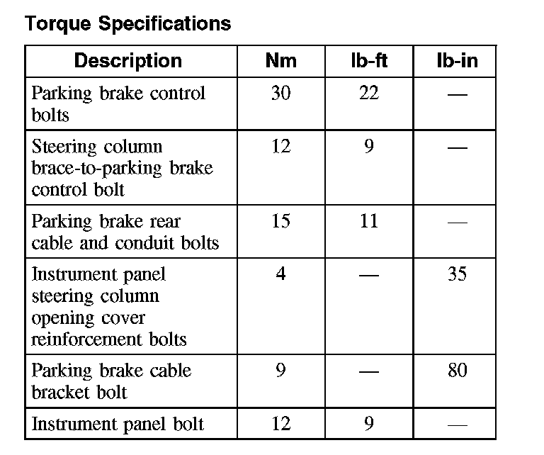 Parking Brake System: Specifications