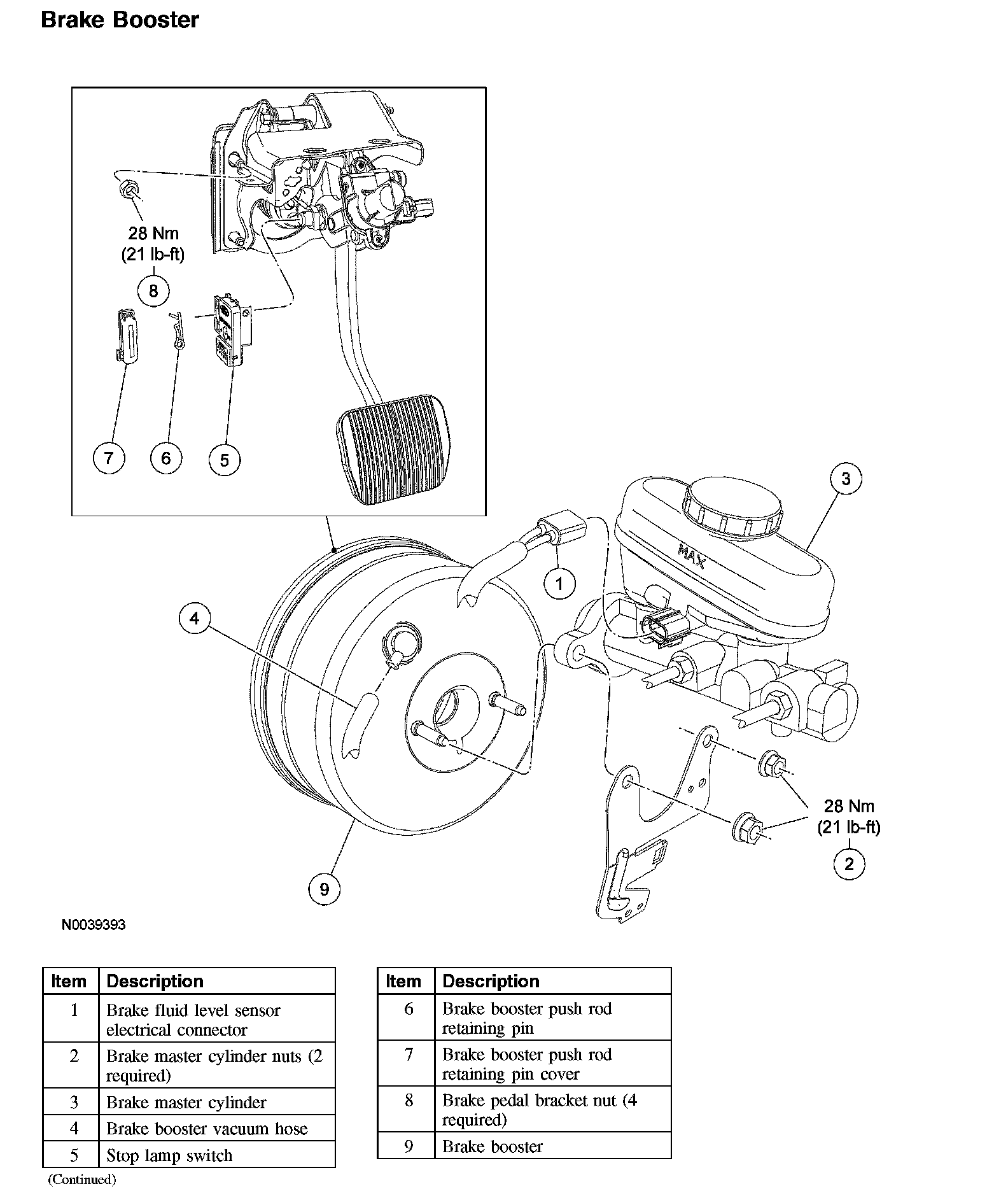 NOTE: The brake booster input rod must be correctly oriented during installation.