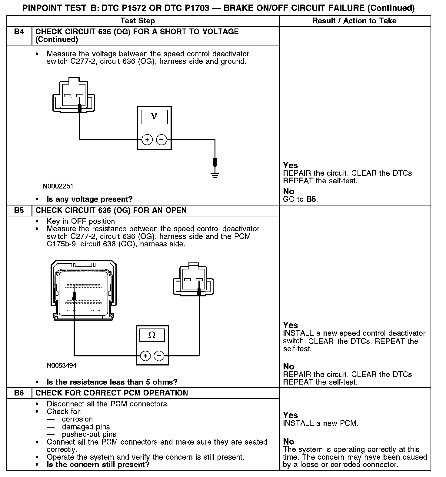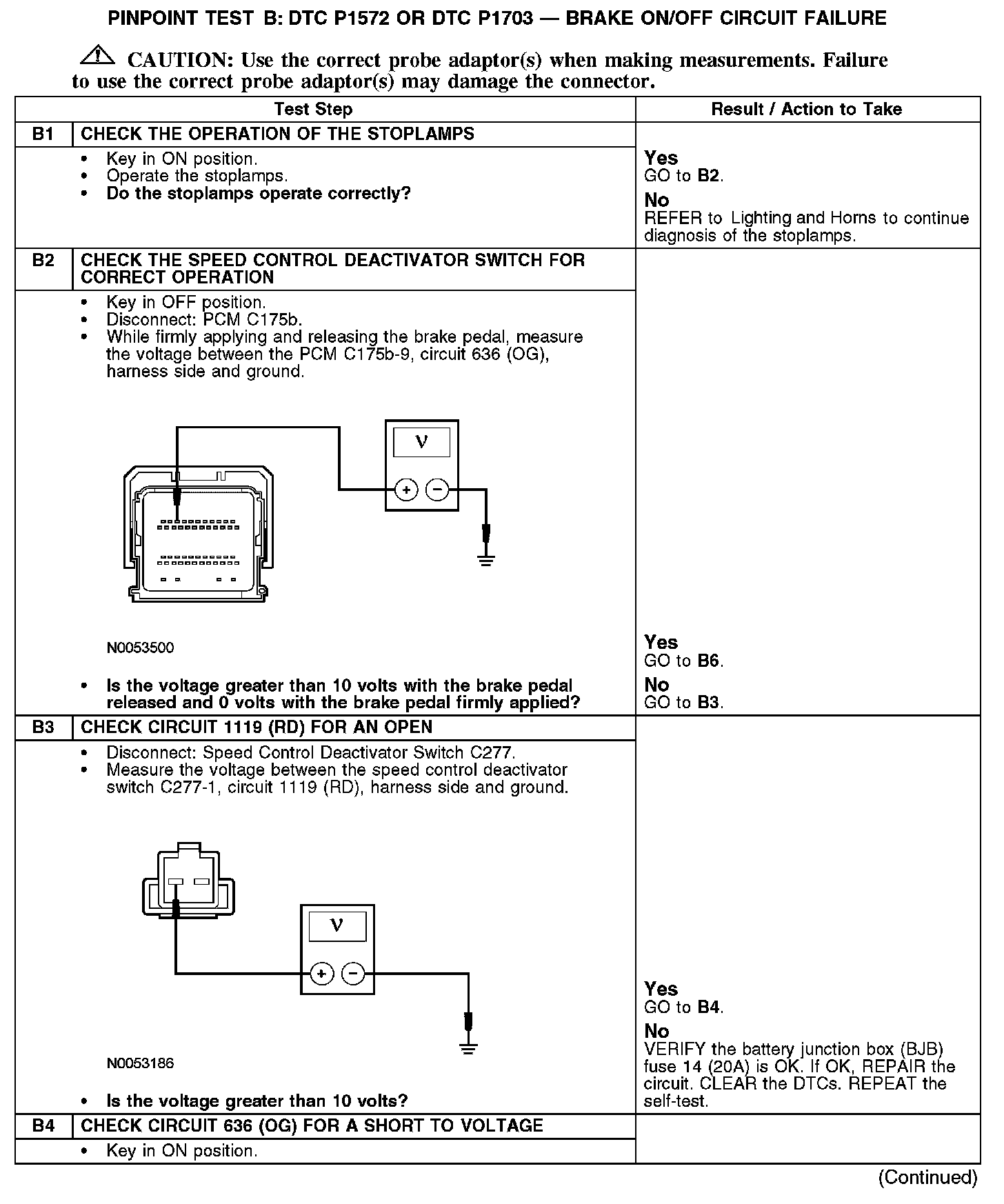 PINPOINT TEST B: DTC P1572 OR DTC P1703 - BRAKE ON/OFF CIRCUIT FAILUREB1-B4: