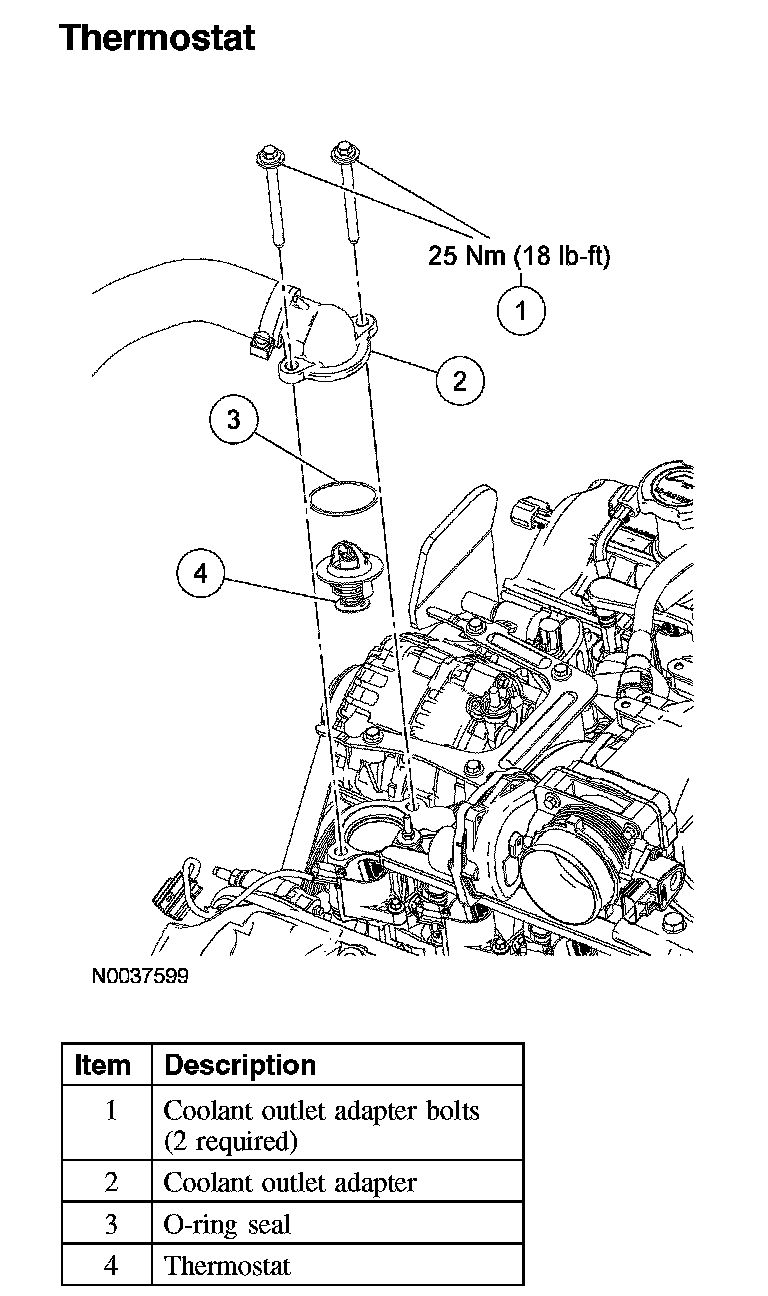 3. Remove the O-ring seal and the coolant thermostat from the intake manifold.