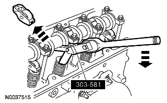 Use the special tool to compress the valve spring and remove the camshaft roller followers.