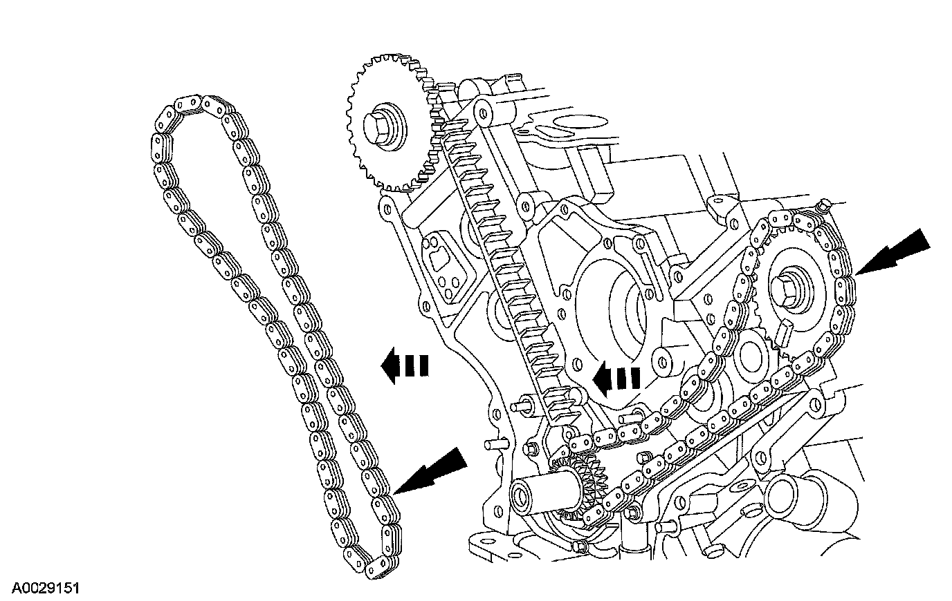 ^ Remove the RH timing chain from the crankshaft sprocket.
