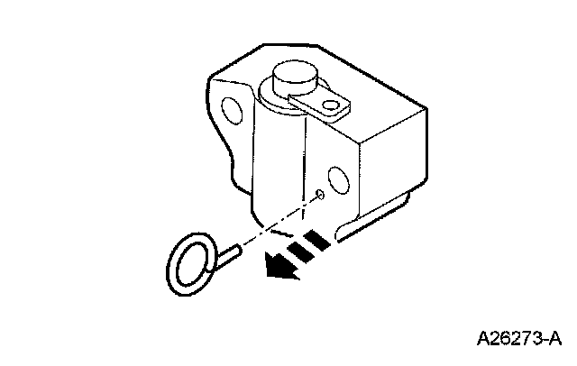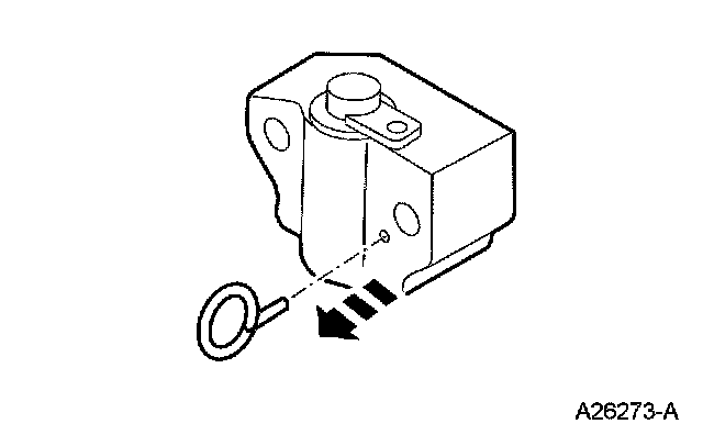 4. Install a paper clip into the hole of each tensioner housing to hold the ratchet assembly and plunger in during installation.