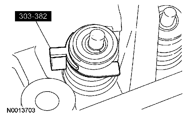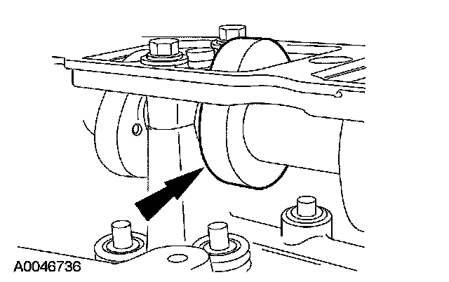 5. CAUTION: If one or both tensioner mounting bolts are loosened or removed, the tensioner-sealing bead must be inspected for seal integrity. Any cracks, tears, cuts or separation from the tensioner body or permanent compression of the seal bead, will require replacement of the tensioner.