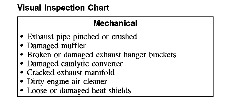 2. Visually inspect the components of the exhaust system and related controls that may affect exhaust gas quality or loss of power.