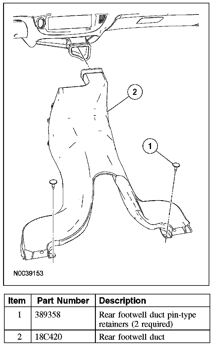 3. Remove the 2 rear footwell duct pin-type retainers.