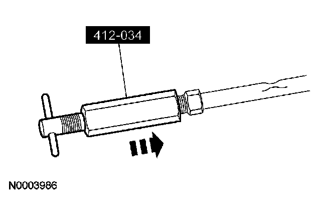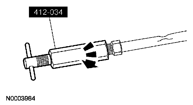 4. If the evaporator core orifice is intact, engage the special tool. Hold the T-handle stationary while rotating the tool body to remove the evaporator core orifice.