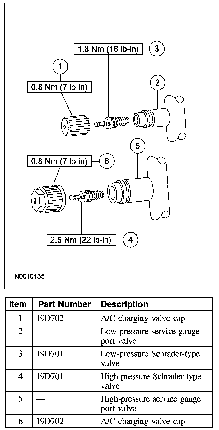 - The service gauge port valve caps are used as primary seals in the refrigerant system to prevent leakage through the Schrader-type valves from reaching the atmosphere. Always install and tighten the A/C service gauge port valve caps to the correct torque after they are removed.