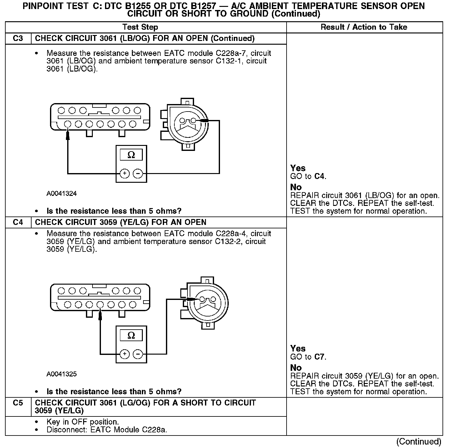 PINPOINT TEST C: DTC B1255 OR DTC B1257 - A/C AMBIENT TEMPERATURE SENSOR OPEN CIRCUIT OR SHORT TO GROUNDC1-C3: