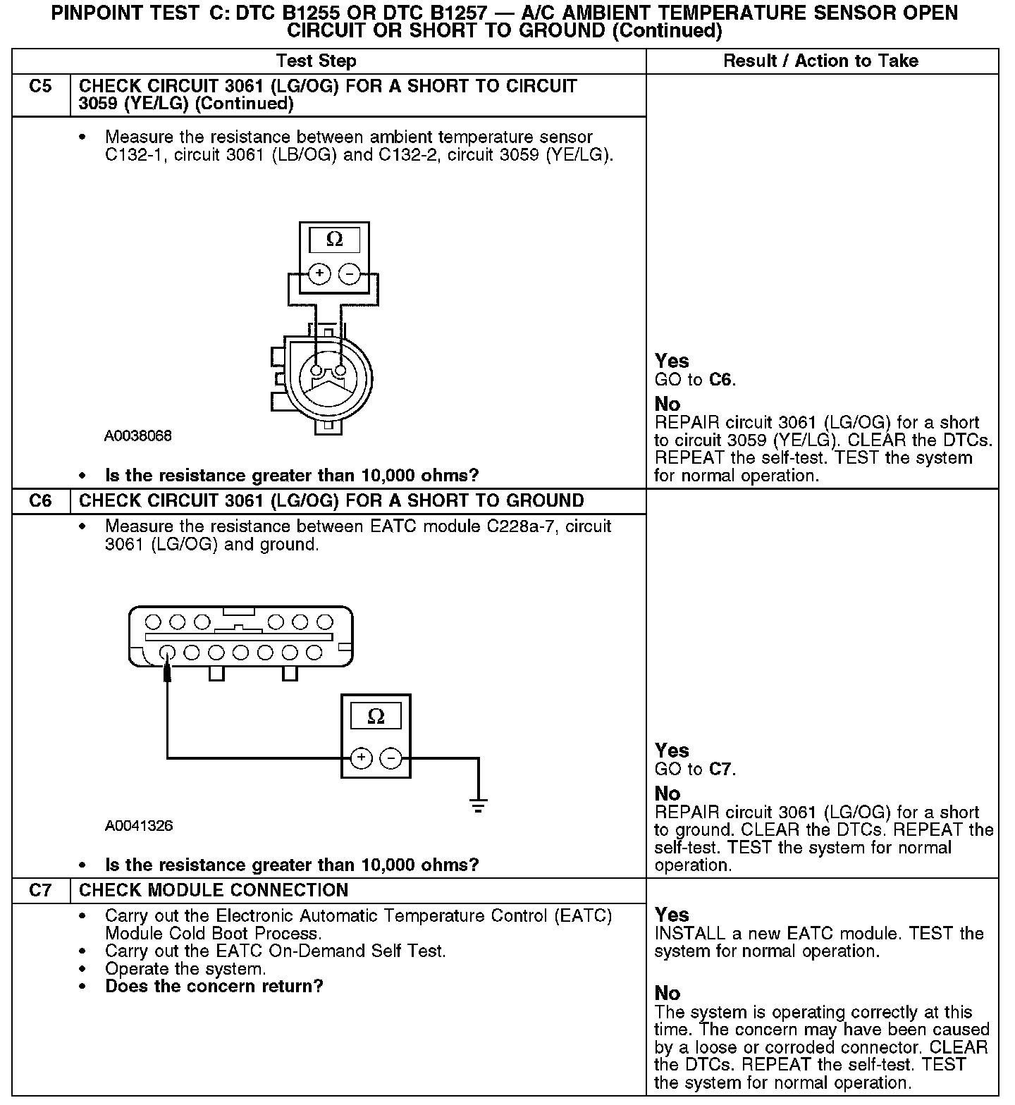 Test C: DTC B1255 Or DTC B1257 - A/C Ambient Temperature Sensor Open Circuit Or Short To Ground