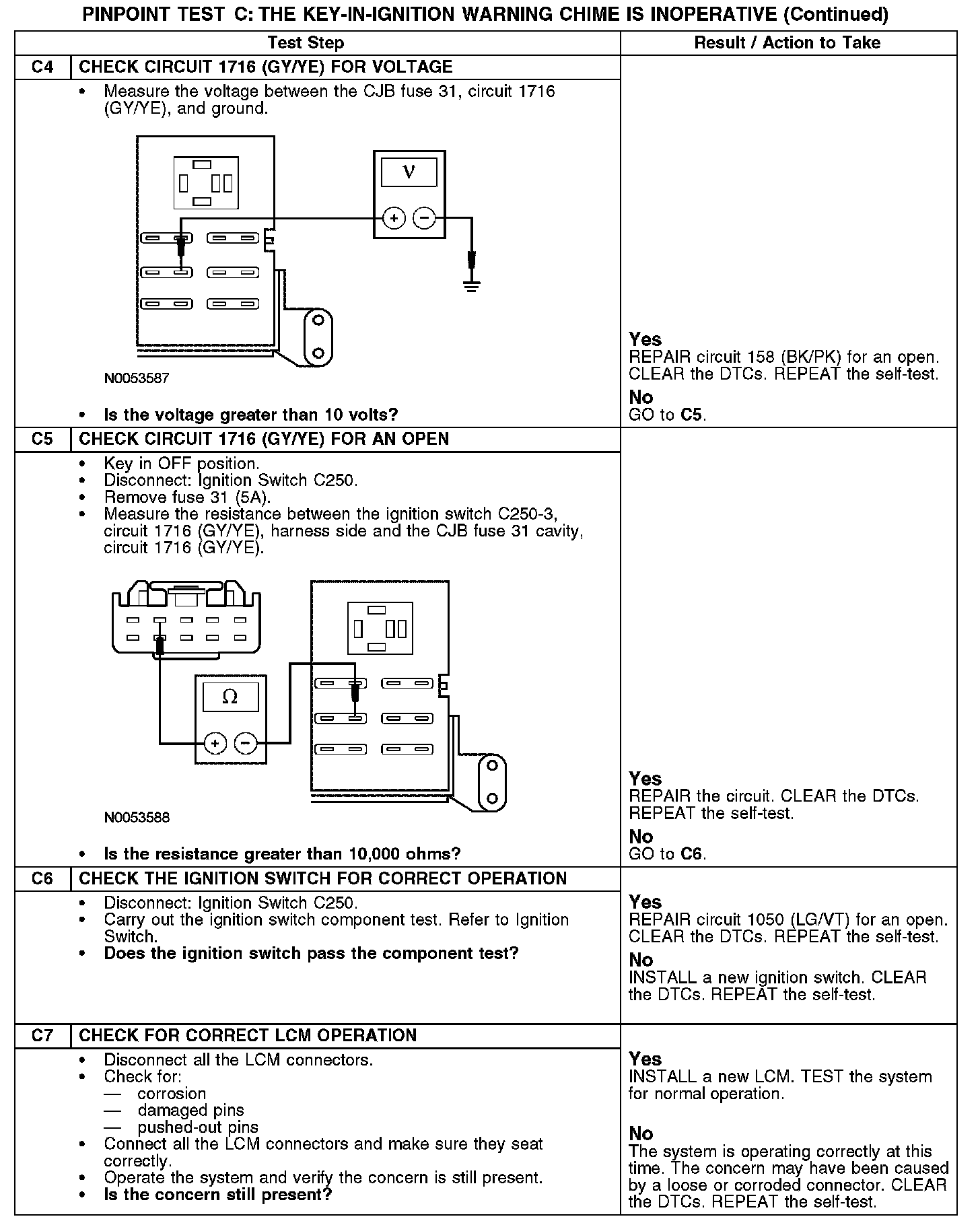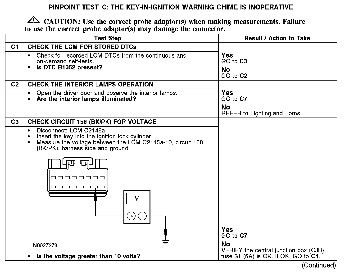 PINPOINT TEST C: THE KEY-IN-IGNITION WARNING CHIME IS INOPERATIVEC1-C3: