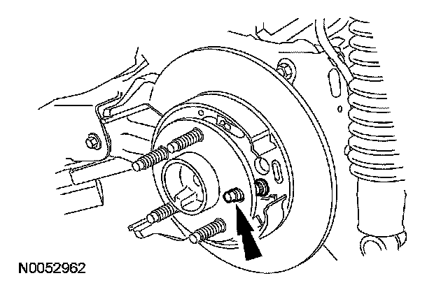 5. Remove the spring and the adjuster from the rear parking brake shoes.
