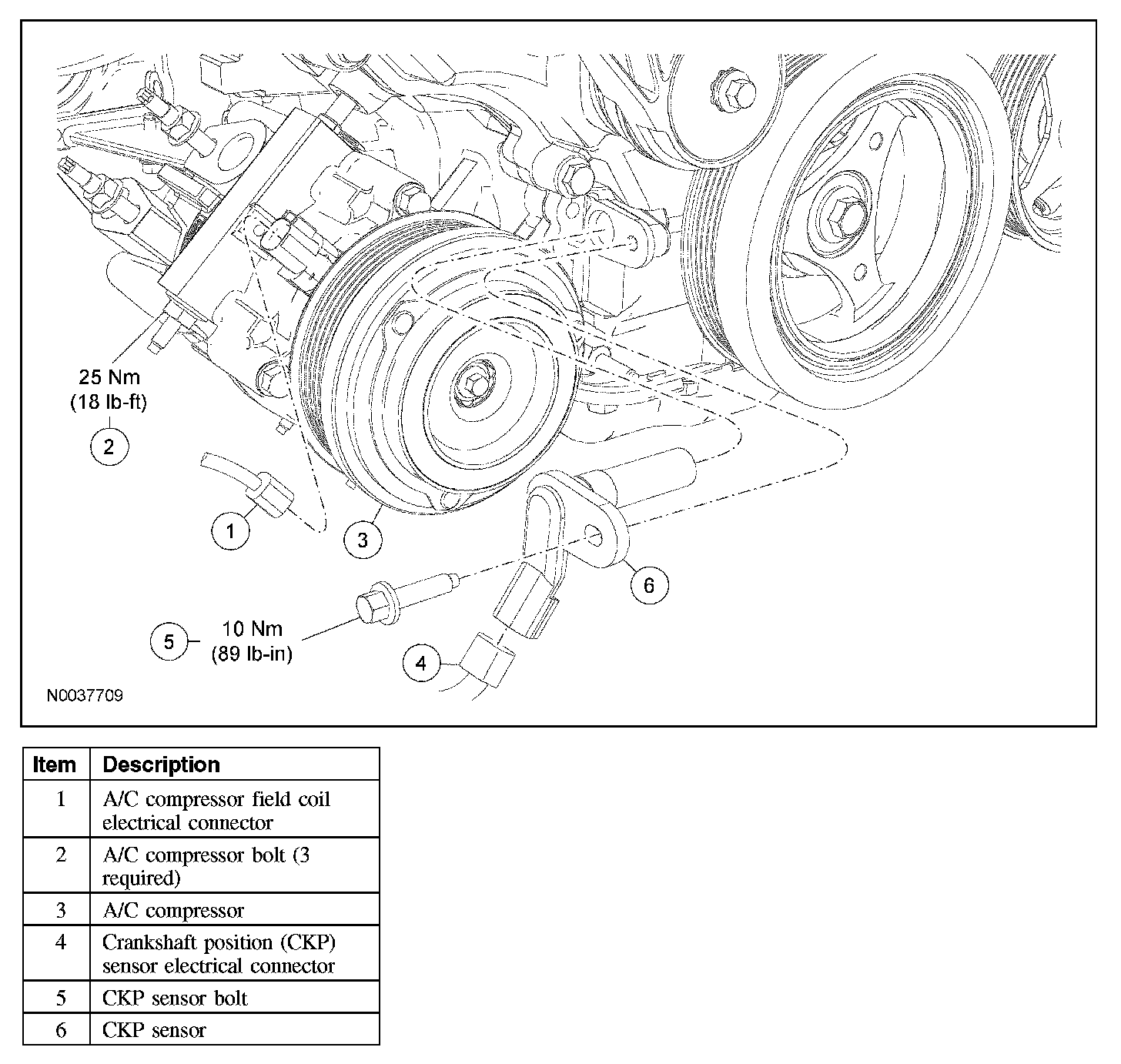 7. NOTE: It is not necessary to remove the A/C compressor bolts.