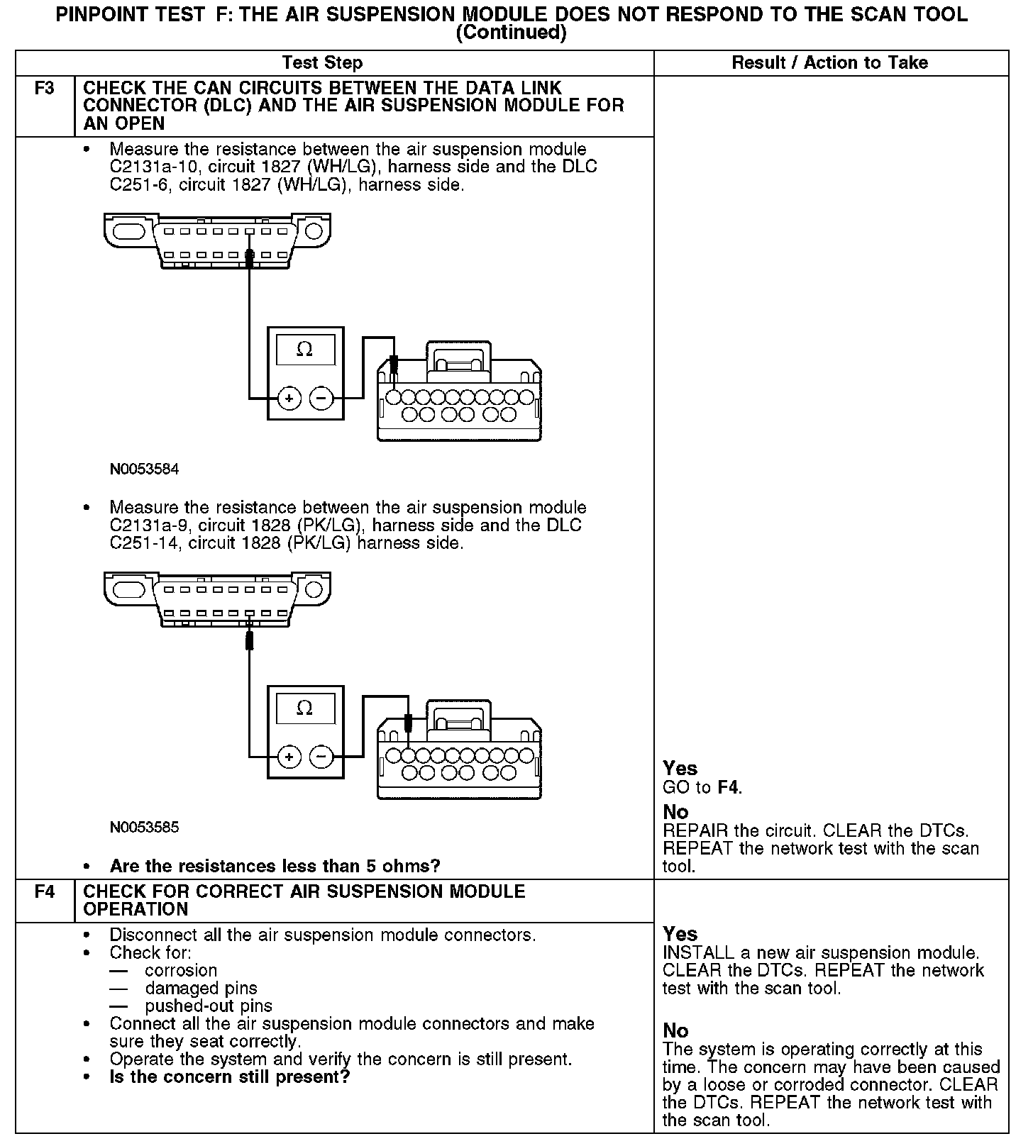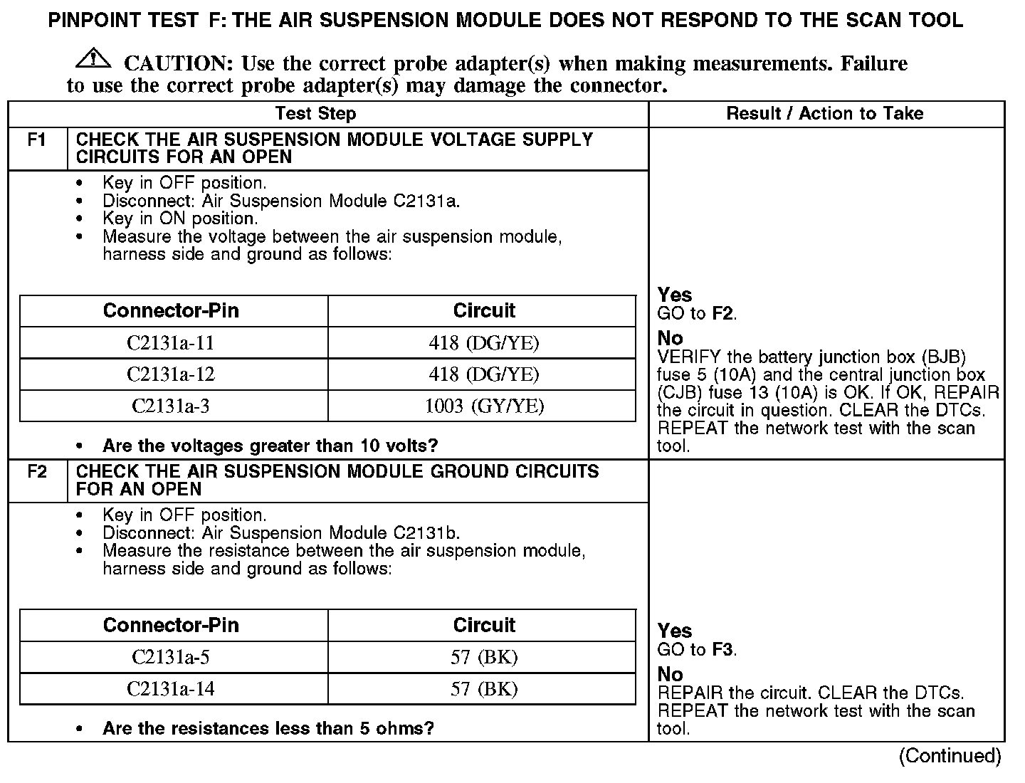 PINPOINT TEST F: THE AIR SUSPENSION MODULE DOES NOT RESPOND TO THE SCAN TOOLF1-F2: