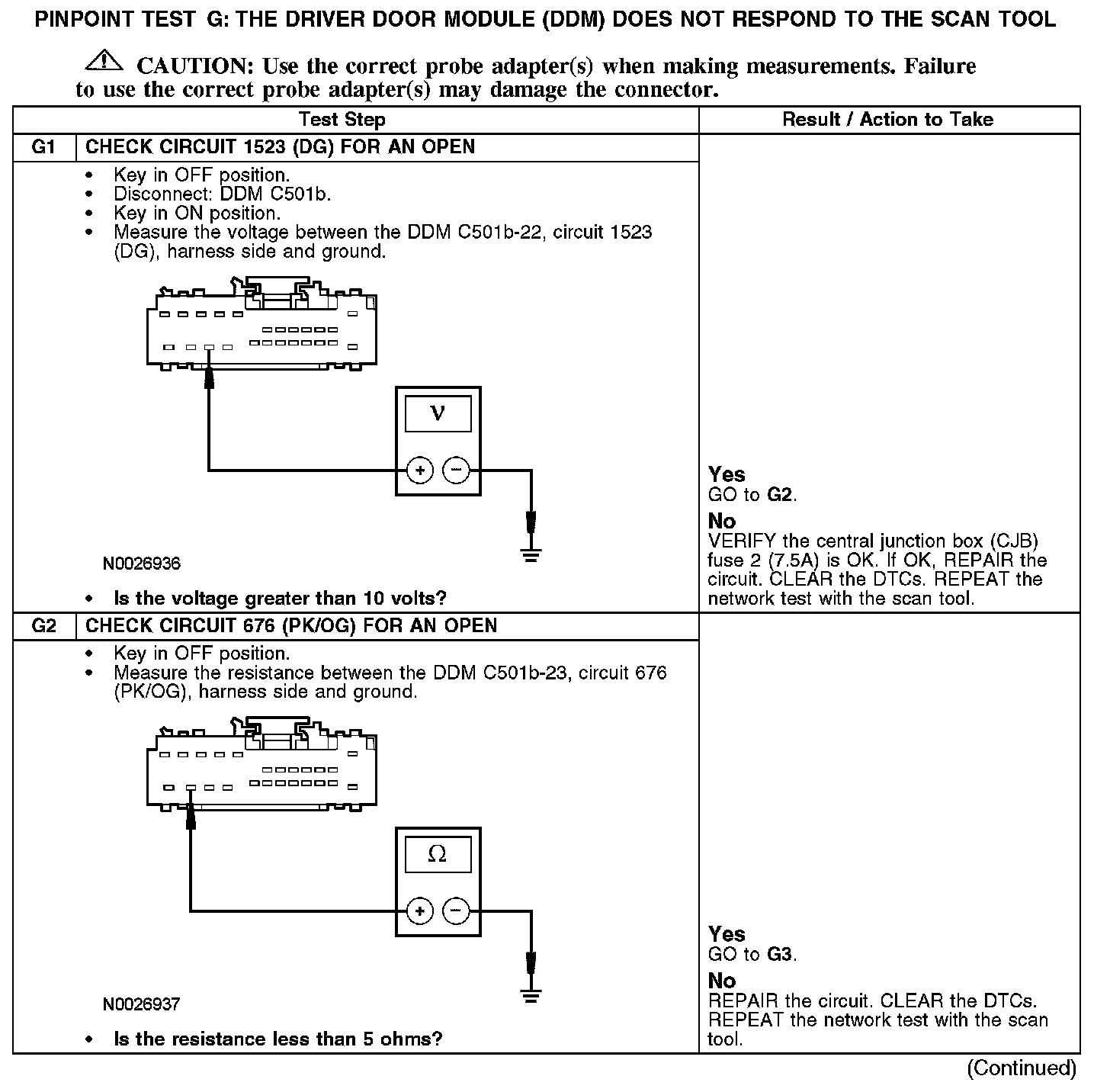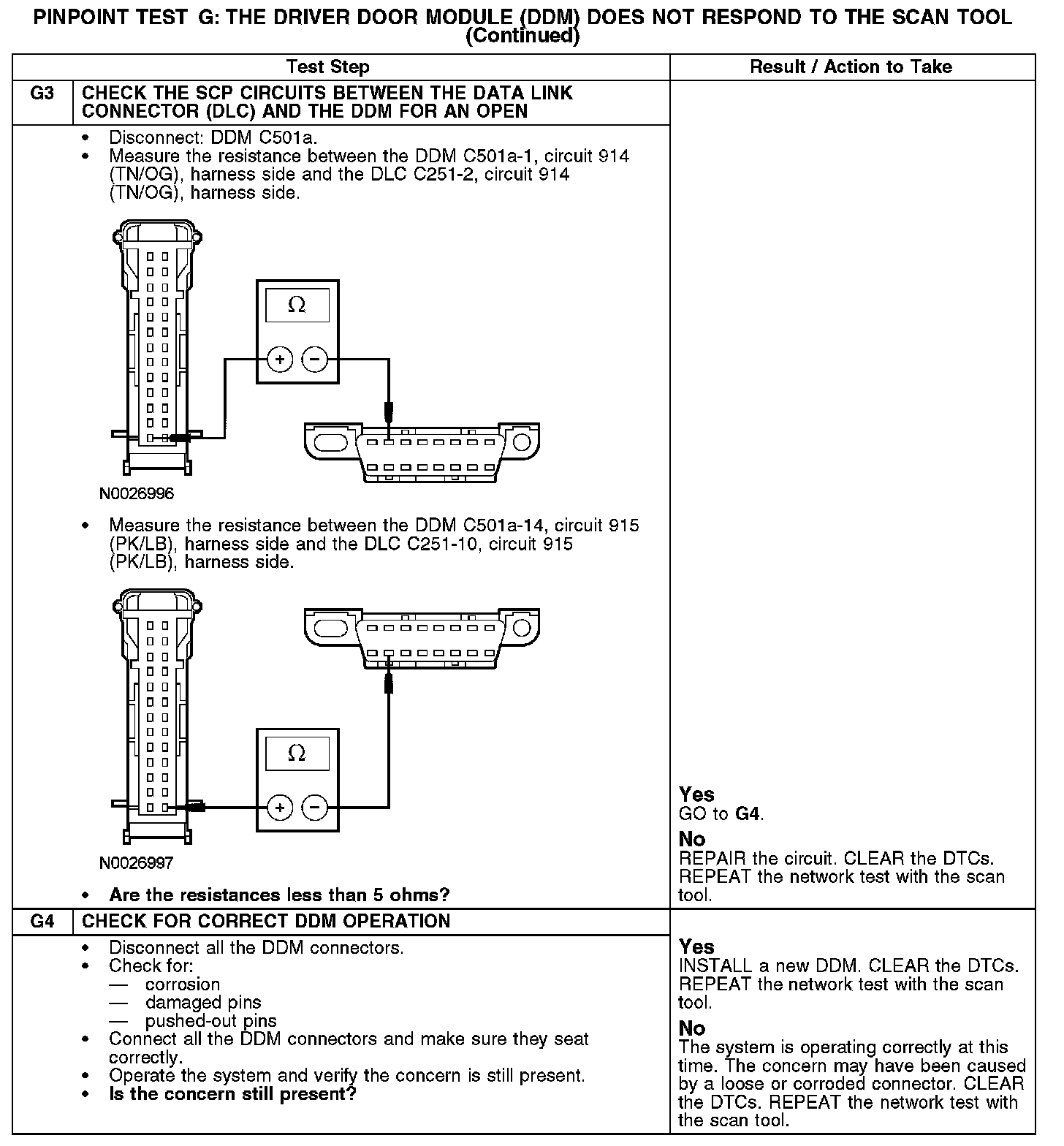 PINPOINT TEST G: THE DRIVER DOOR MODULE (DDM) DOES NOT RESPOND TO THE SCAN TOOLG1-G2: