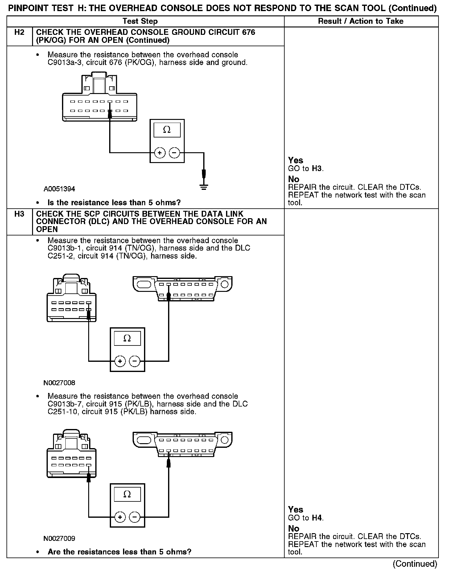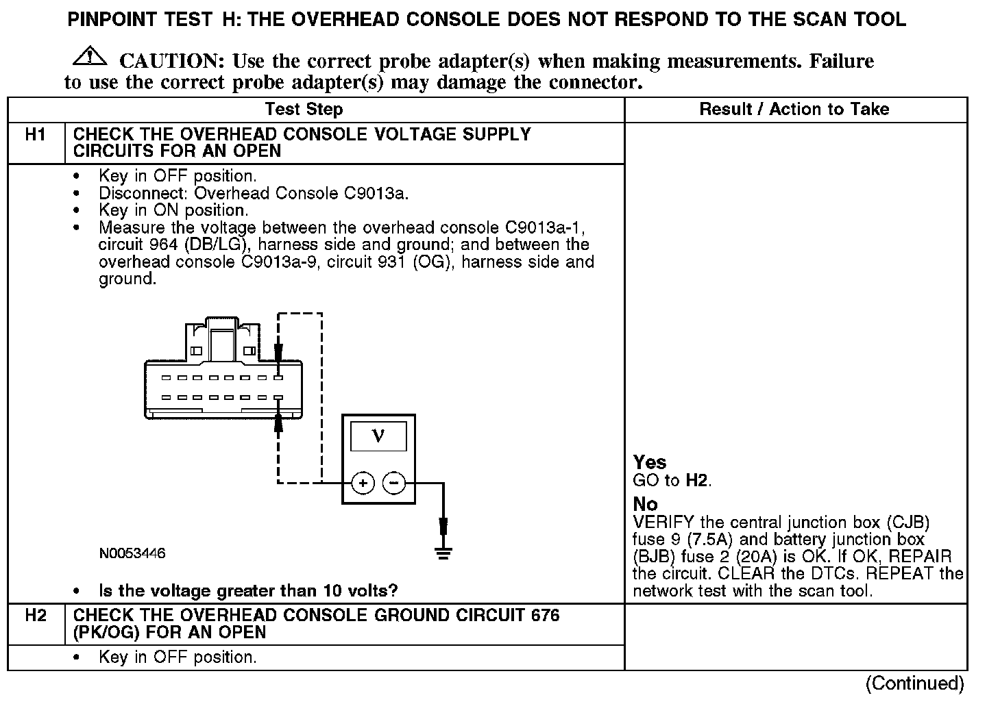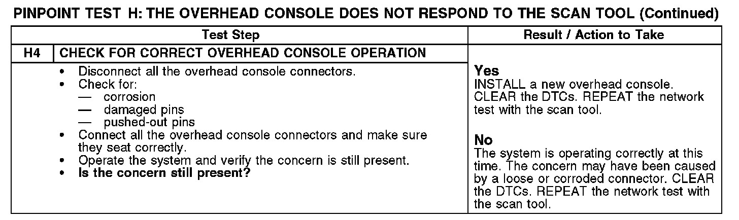 PINPOINT TEST H: THE OVERHEAD CONSOLE DOES NOT RESPOND TO THE SCAN TOOLH1-H2:
