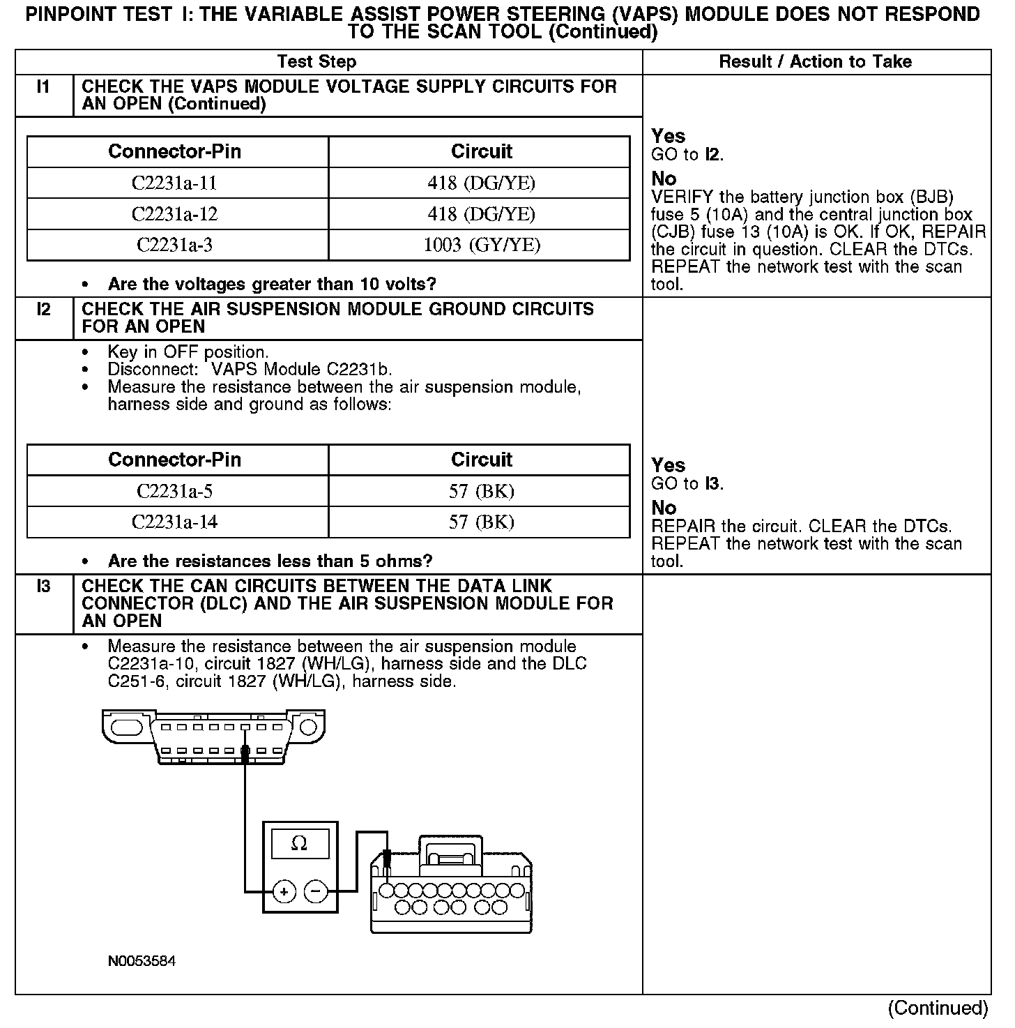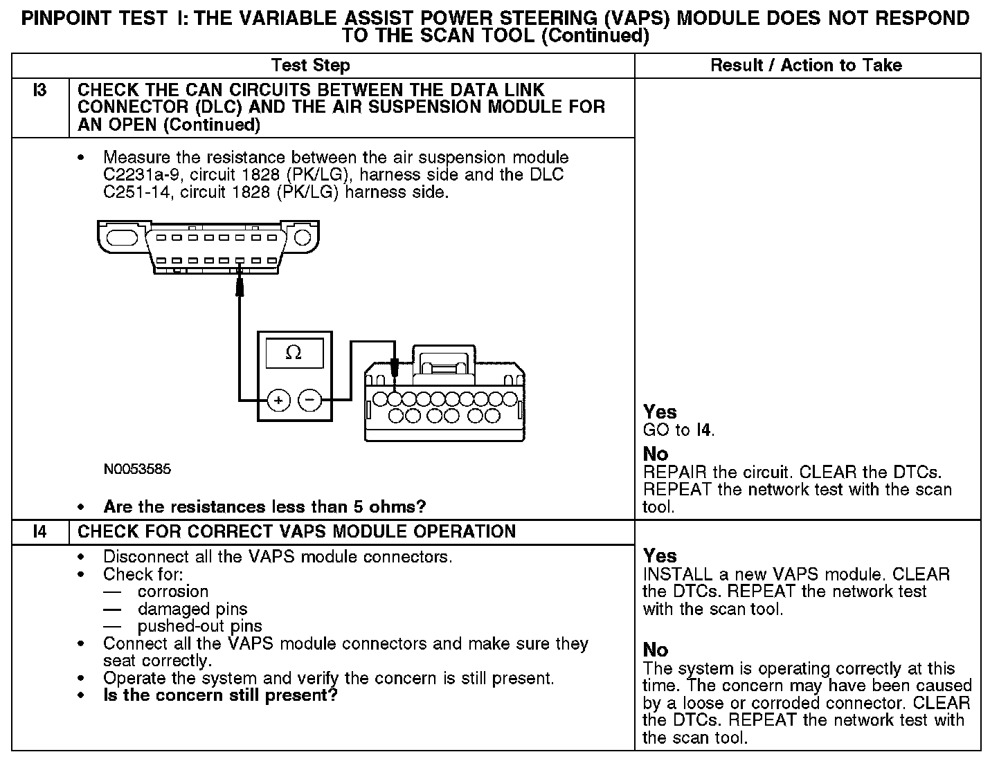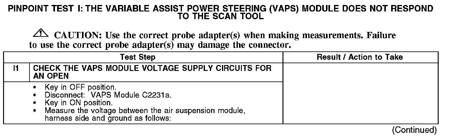 PINPOINT TEST I: THE VARIABLE ASSIST POWER STEERING (VAPS) MODULE DOES NOT RESPOND TO THE SCAN TOOLI1: