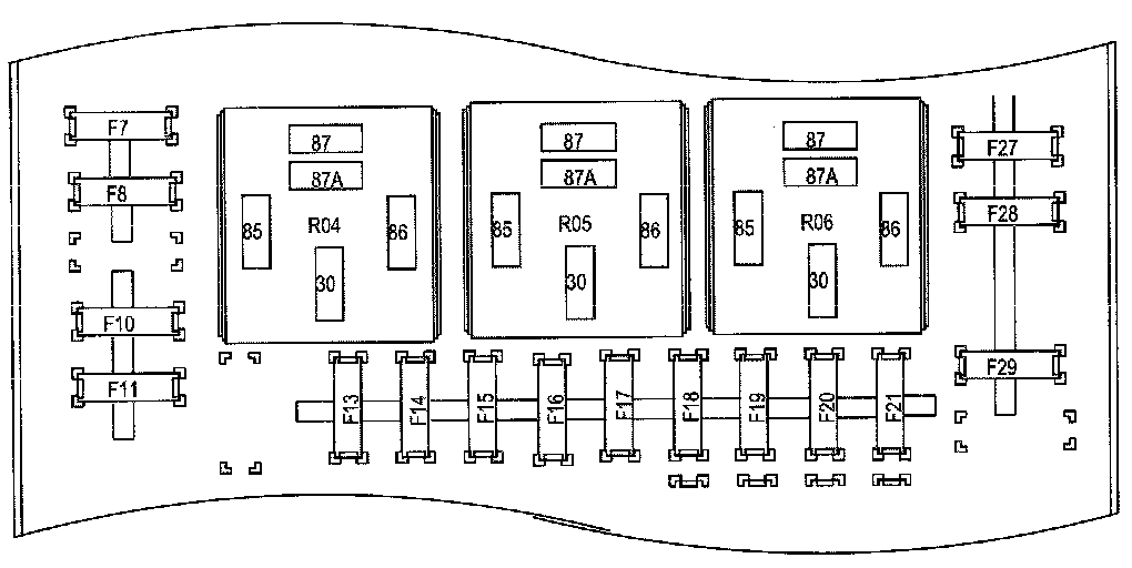 Fuse and Relay Information contains a view of the fuse-/relay box in which all fuses and relays are identified. Fuse and Relay Numbering and Naming. Fuse and relay numbering and naming follow the indication of the fuse panel cover.