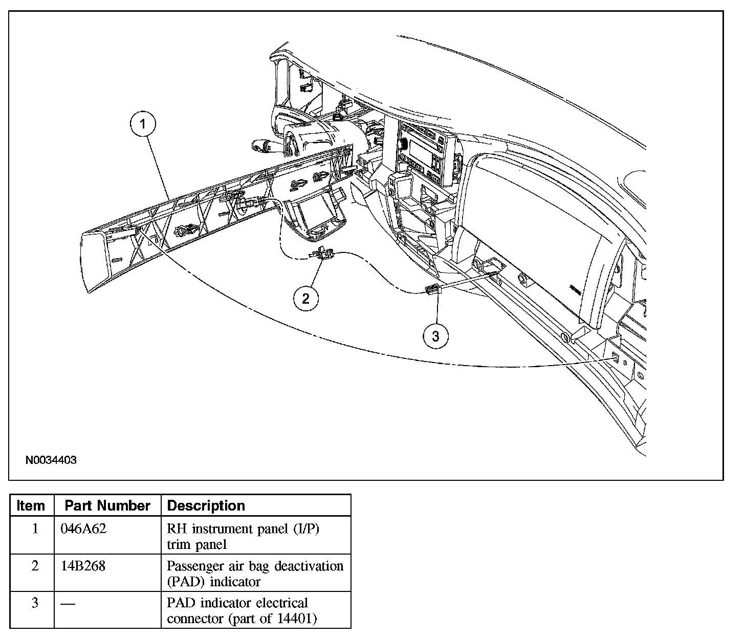 PASSENGER AIR BAG DEACTIVATION (PAD) INDICATORRemoval and Installation