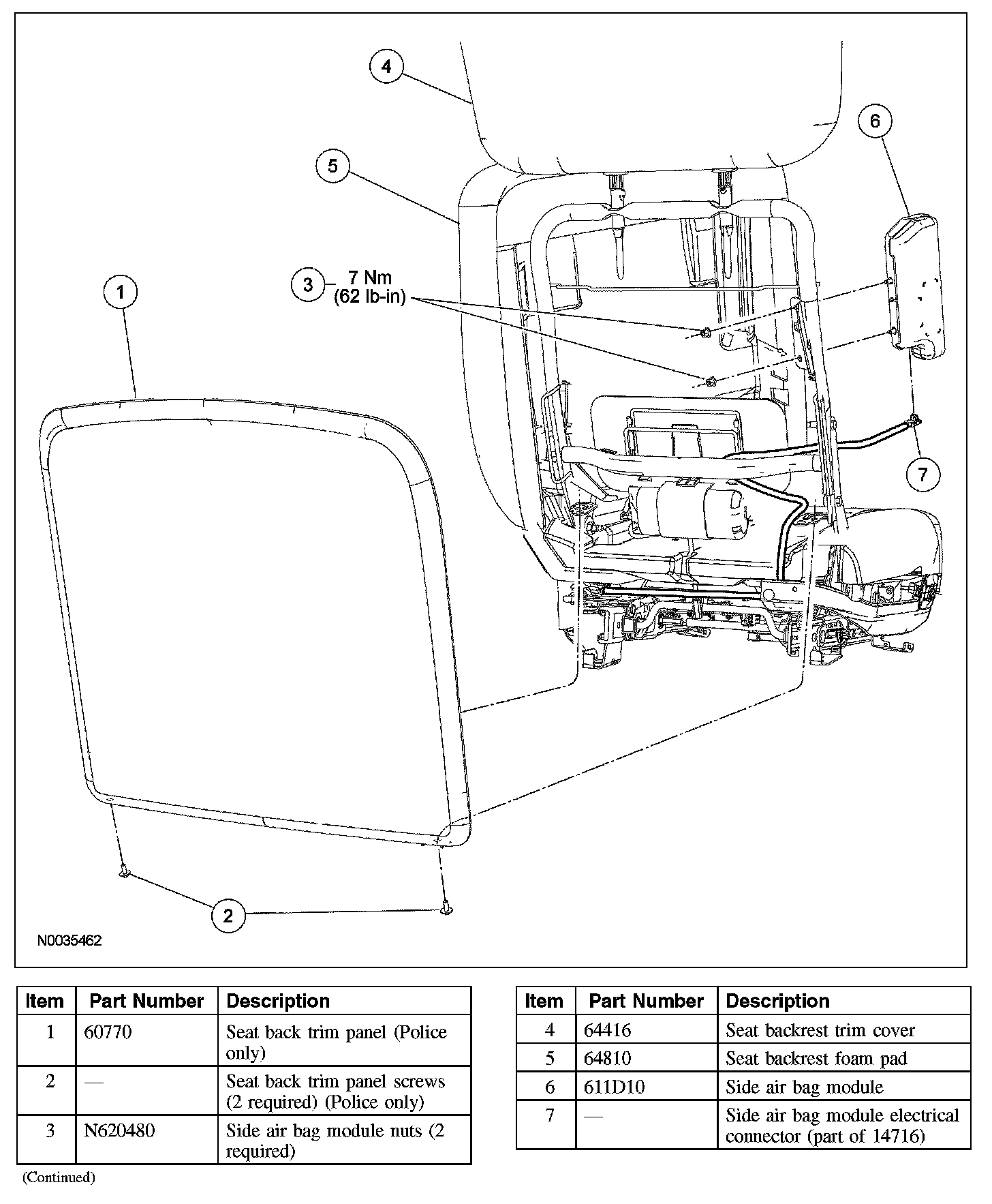 7. NOTE: If installing a new side air bag module, use new retaining nuts. If the same side air bag module is to be reused, then reuse the side air bag module nuts.