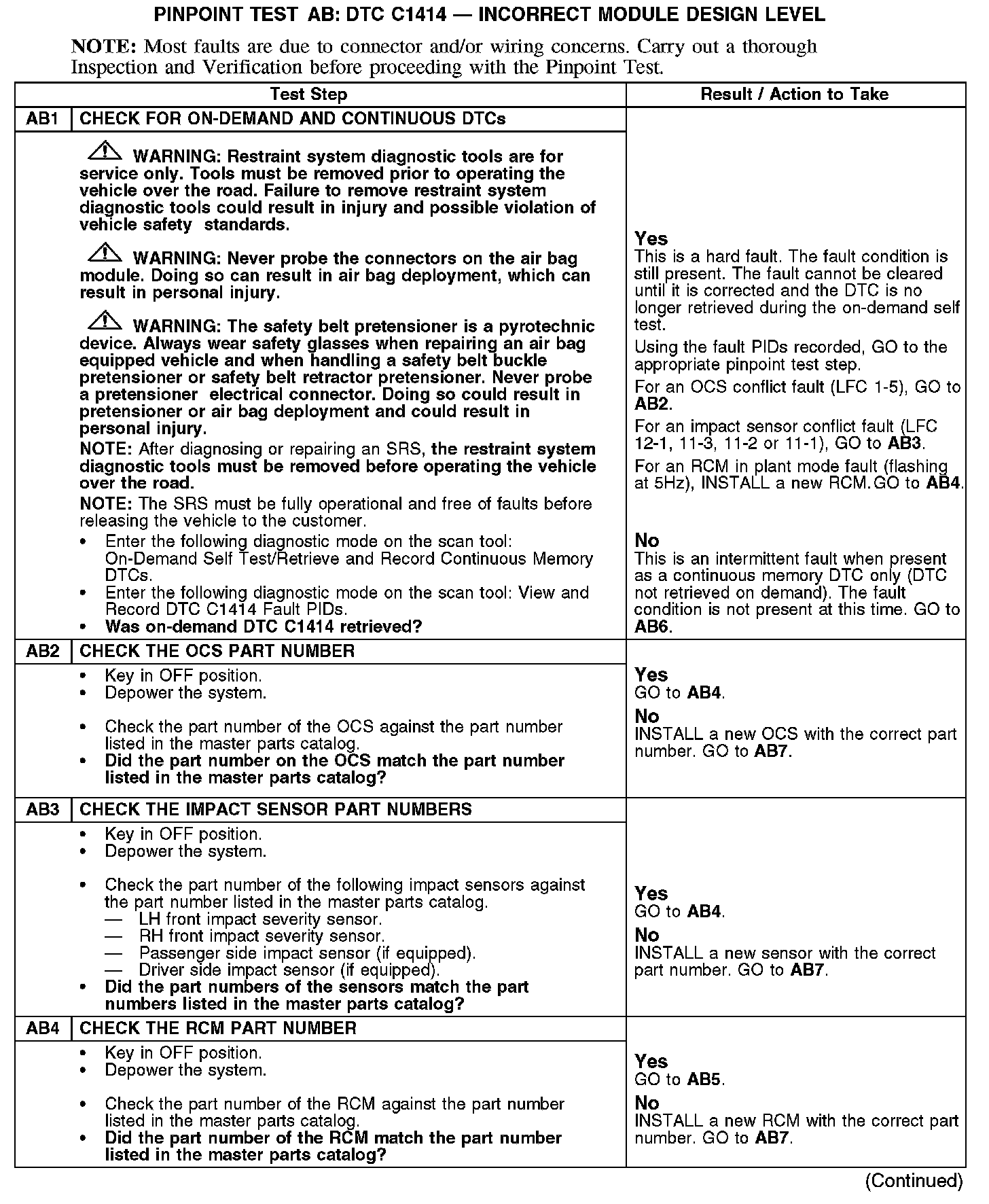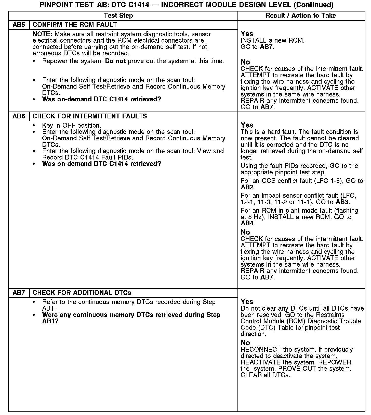 PINPOINT TEST AB: DTC C1414 - INCORRECT MODULE DESIGN LEVELAB1-AB4: