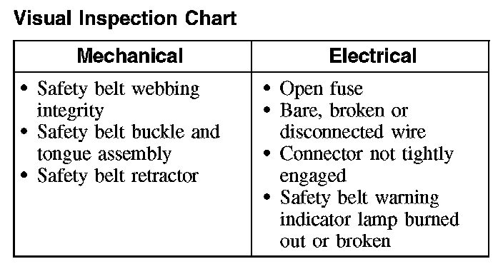 3. If the inspection reveals an obvious concern(s) that can be readily identified, service as required. With the exception of removing a twist from the safety belt webbing, do not attempt to repair a component of the safety belt system; new components must be installed.
