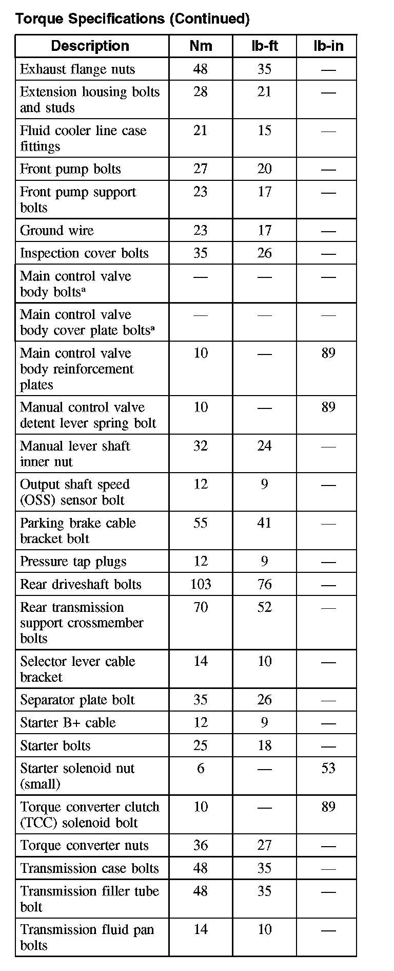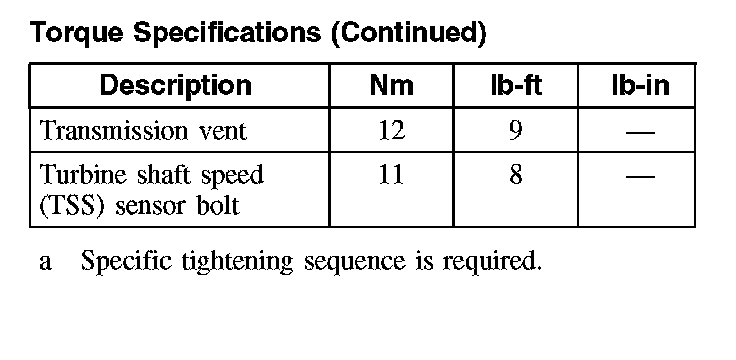 Torque Specifications: