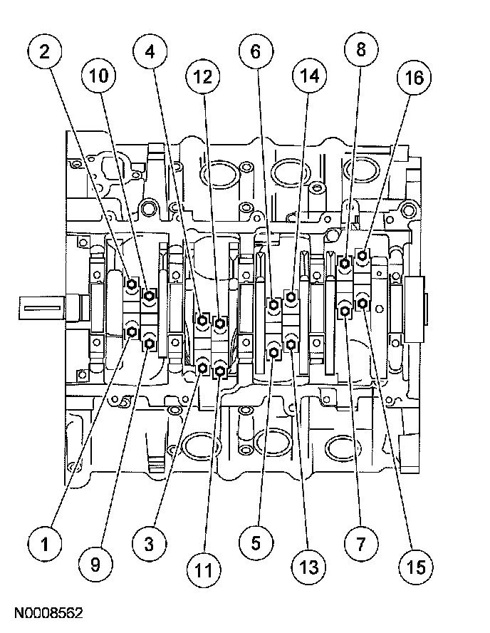 Connecting Rod Bearing Cap BoltsTighten the 16 bolts in 2 stages, in the sequence shown.