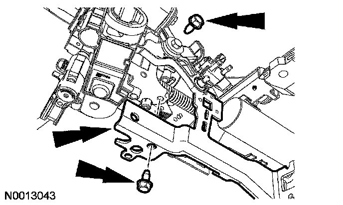 11. Remove the 2 bolts and the inhibitor cable bracket.