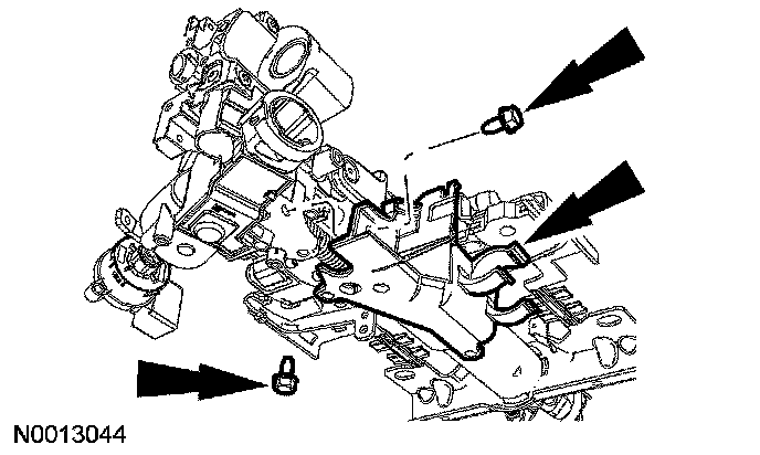 4. NOTE: Make sure the pocket in the inhibitor for the brake shift interlock solenoid plunger is free of grease and foreign material.