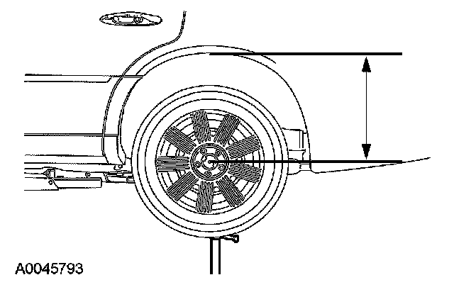 2. For reference during the installation procedure, measure the distance from the lip of the fender to the center of the wheel hub with the vehicle in a static level ground position.