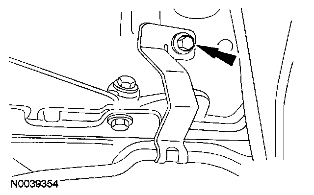 8. Remove the bolt retaining the line routing bracket to the engine and remove the transmission fluid cooler tube(s).