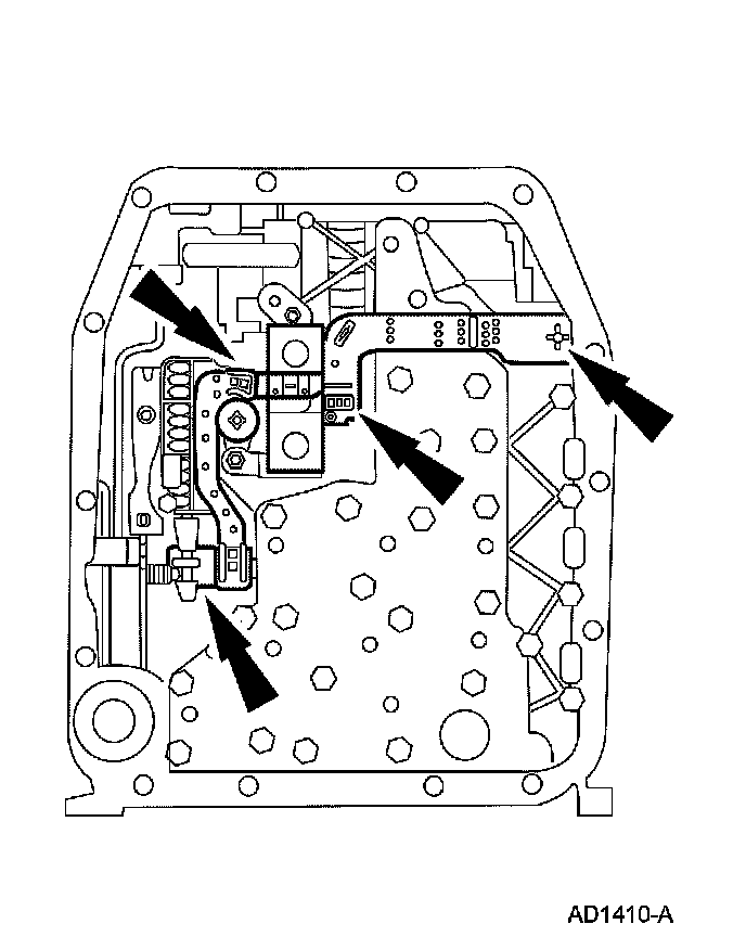 2. CAUTION: Do not pull on the molded lead frame. This may cause damage to the connector ends. Carefully pry up on the locking tabs to disconnect the solenoids. Disconnect the molded lead frame from the solenoids.