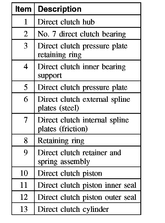 Direct Clutch Disassembled View:
