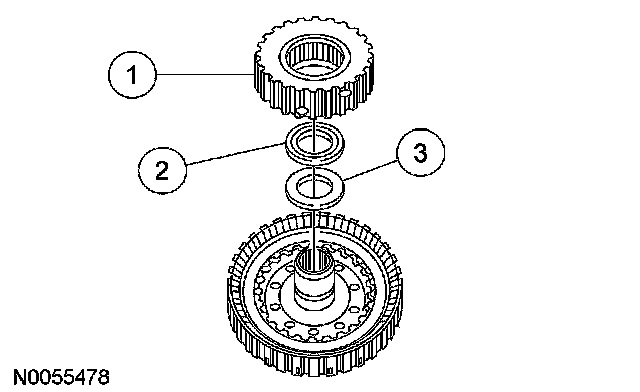 15. NOTE: Direct clutch cylinder may be installed after the output shaft ring gear is installed to the output shaft hub.